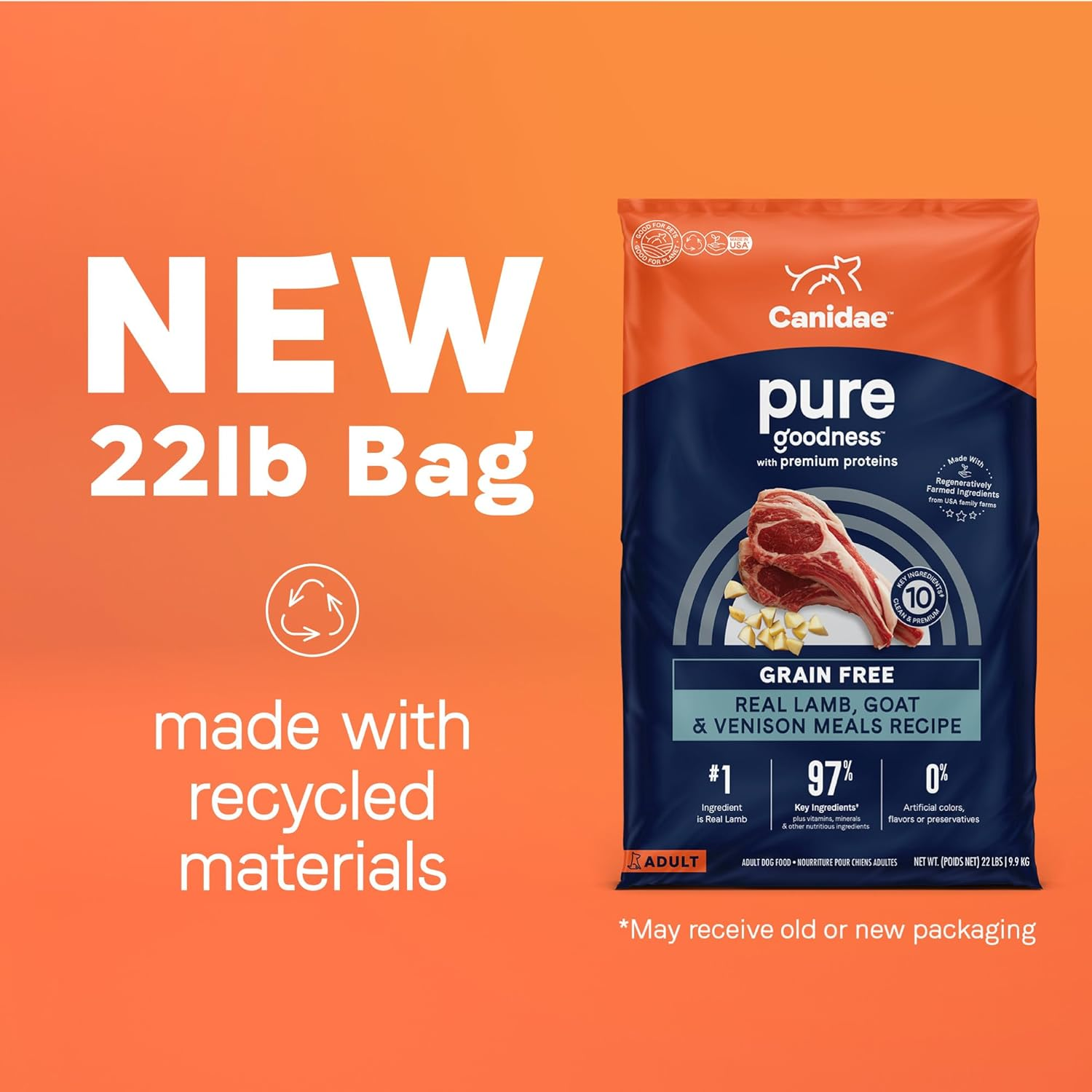 Canidae Pure Limited Ingredient Premium Adult Dry Dog Food, Real Lamb, Goat & Venison Meals Recipe, 22lbs, Grain Free