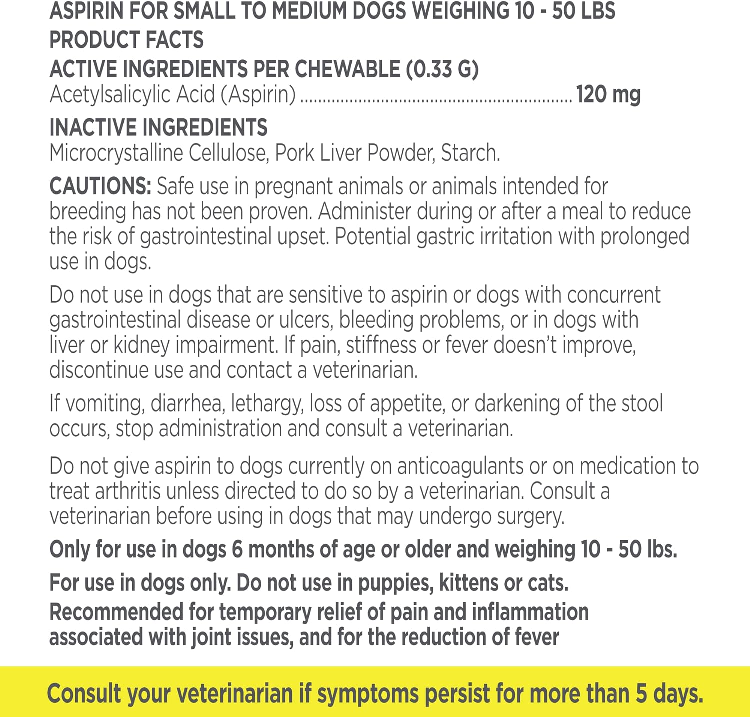 Color: No Color Brand Vetality Flavor Liver Item Form Tablet Active Ingredients Acetylsalicylic Acid (Aspirin) Item Weight 24.4...