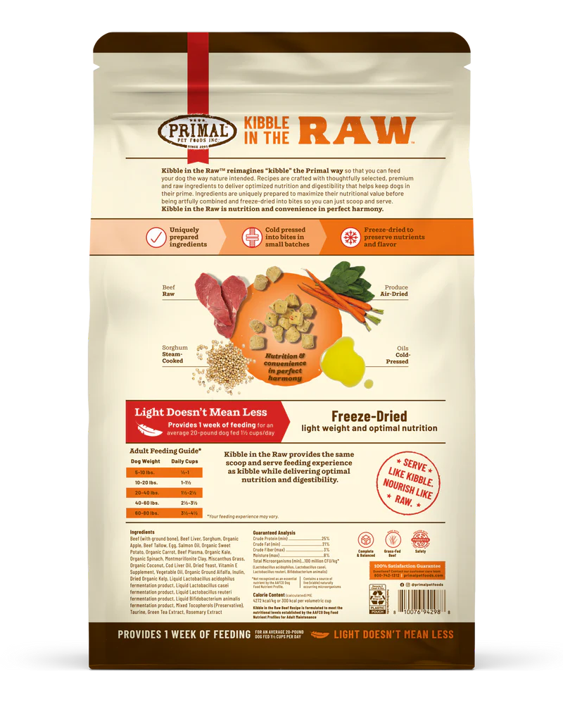 Primal Kibble in The Raw Freeze Dried Dog Food Beef, Complete Diet Scoop & Serve Healthy Raw Dog Food, Crafted in The USA .