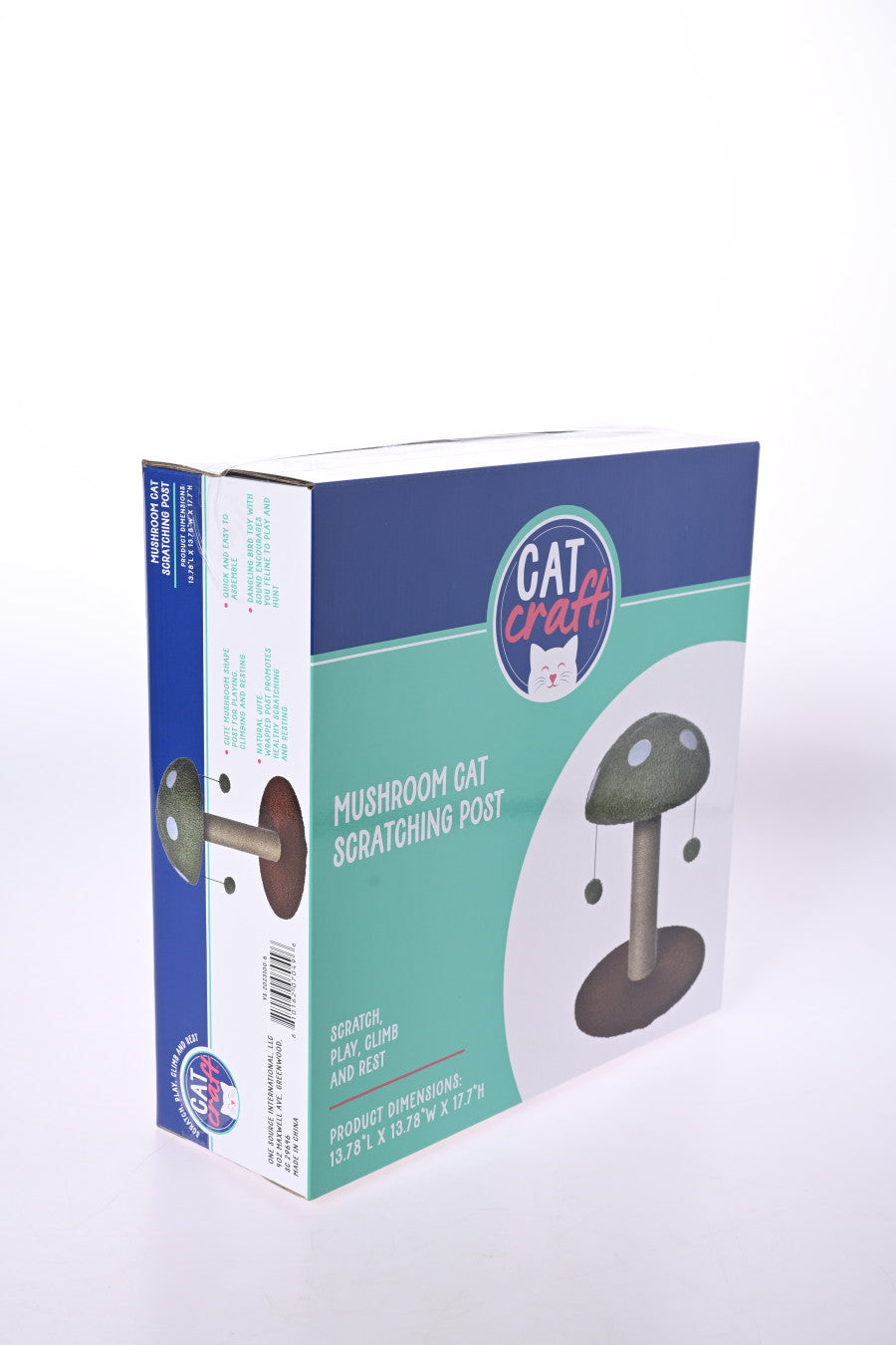 Cat Craft Green Mushroom Cat Tree with dangling toy is designed with stability in mind. Has Natural Jute-wrapped post promotes healthy scratching. Assembly is required.
