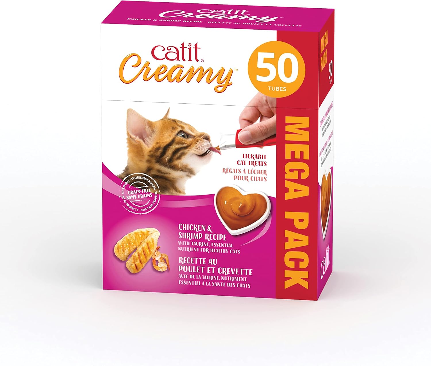 Catit Creamy Lickable Cat Treat, Healthy Cat Treat, Chicken & Shrimp, 50 Pack, 0.5 Ounce (Pack of 50)