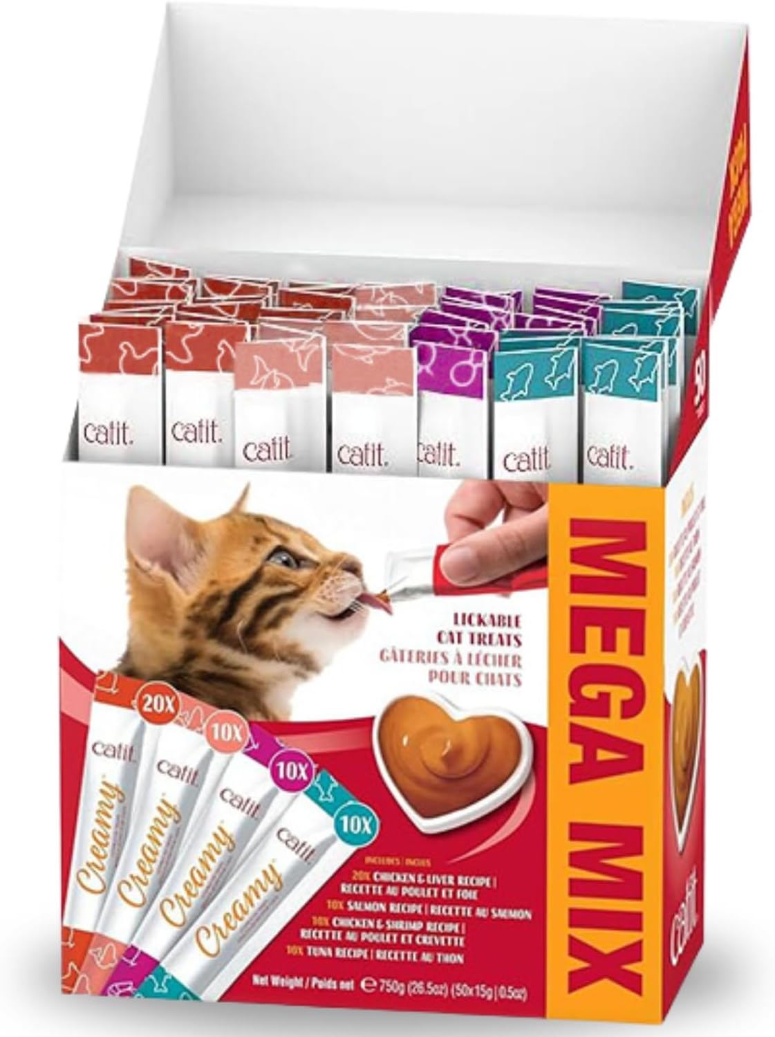 Catit Creamy Lickable Cat Treat – Healthy Variety of Flavors, 50 Pack, Hand-Feed or Serve, Nutrient-Rich Squeeze Tube, 0.5 oz Each