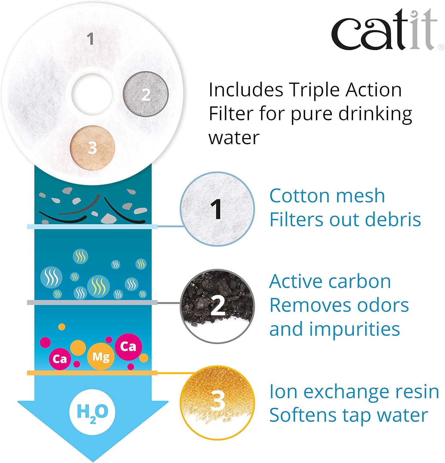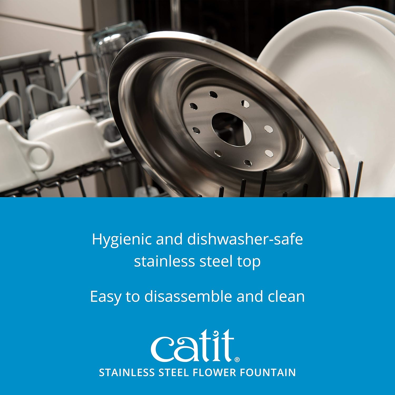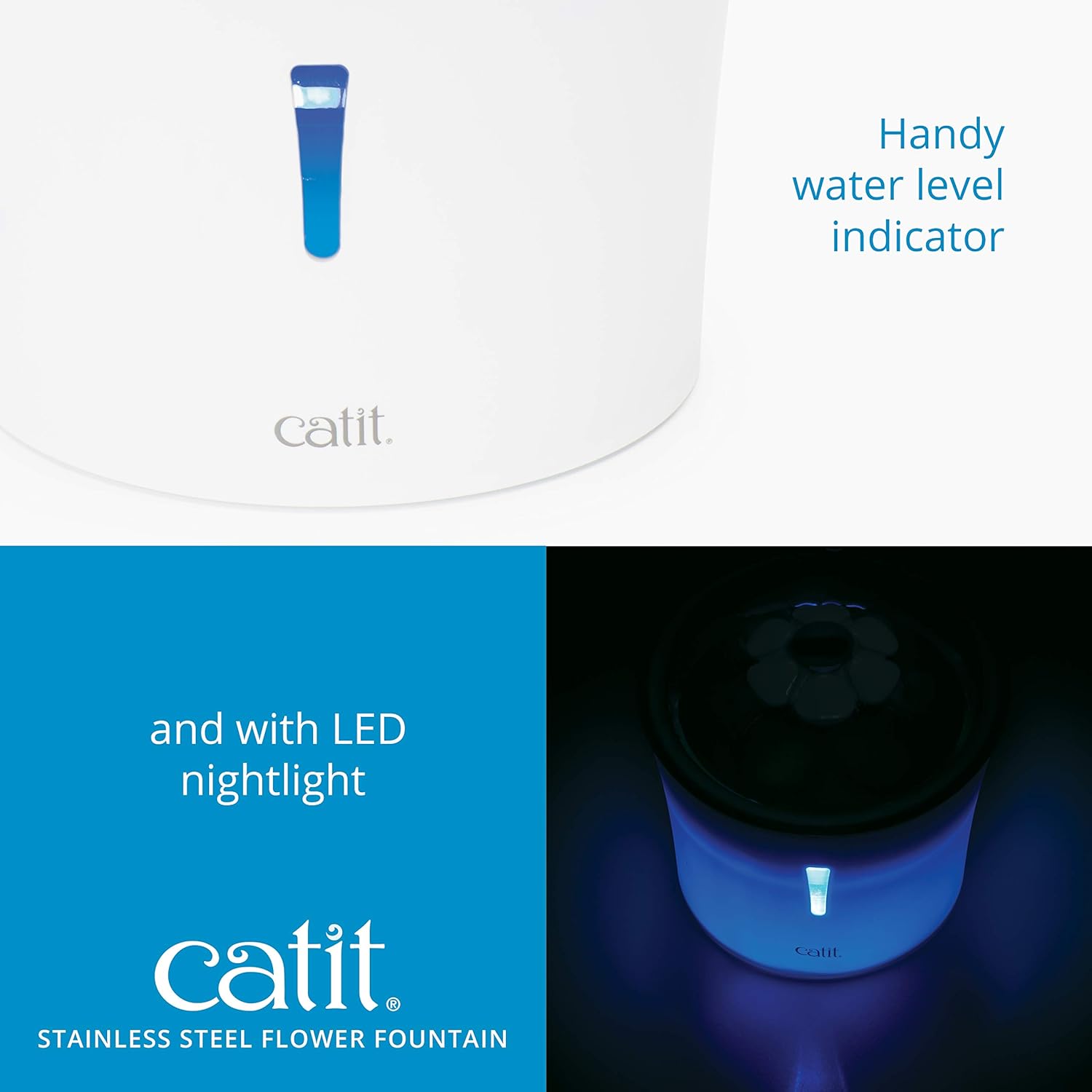 Catit Stainless Steel Flower Fountain with Triple Action Filter, Cat Drinking Water Fountain, 3 L