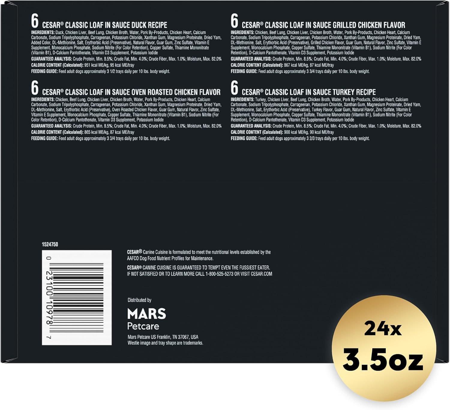Brand Cesar Wet Dog Food Flavor Poultry Variety Age Range (Description) Adult Item Form Chunk Specific Uses...