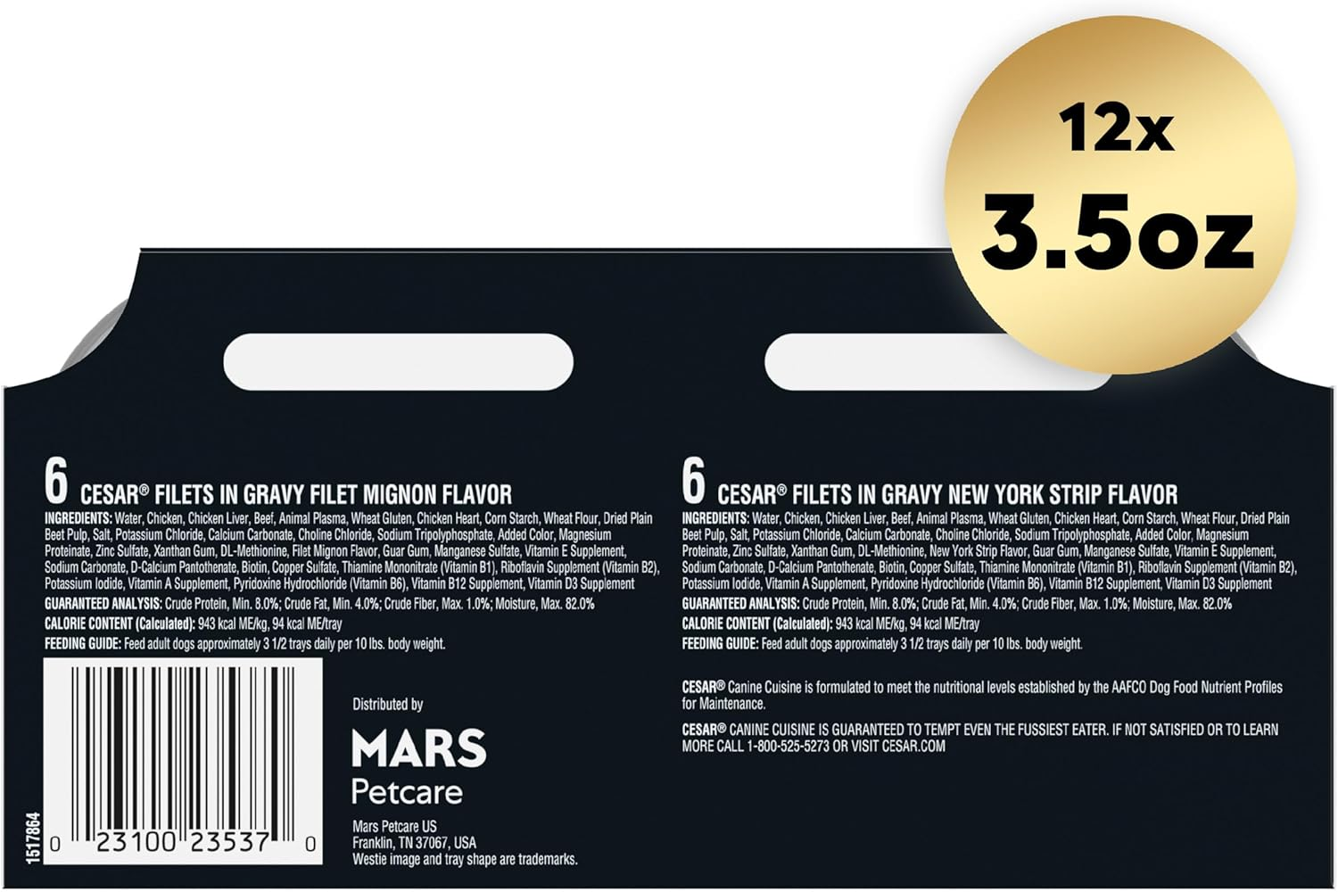 CESAR Filets in Gravy Adult Wet Dog Food, Filet Mignon and New York Strip Flavors Variety Pack