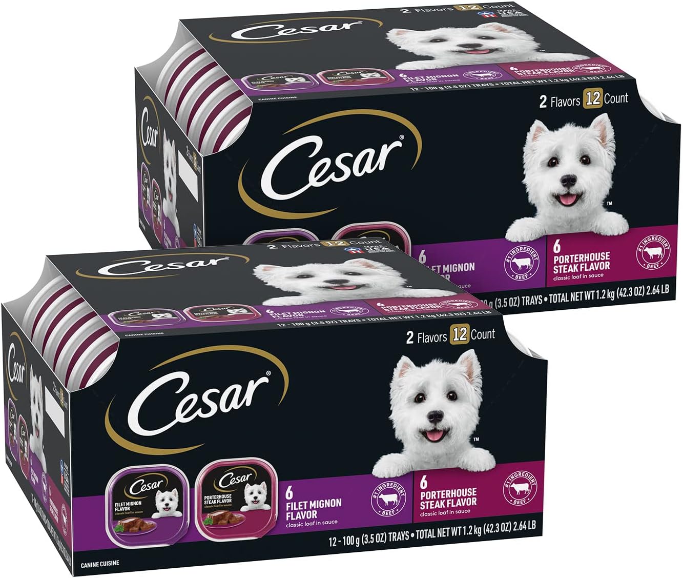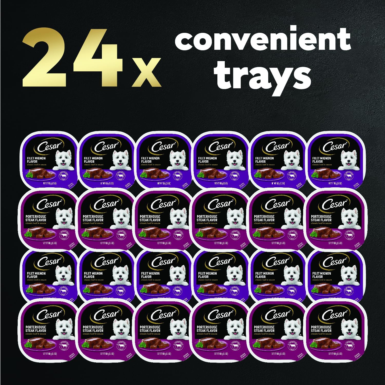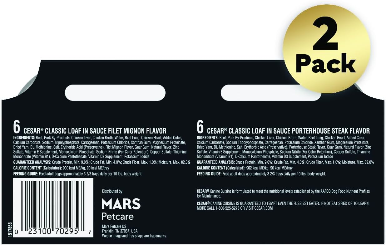 Cesar Wet Dog Food Classic Loaf in Sauce Filet Mignon and Porterhouse Steak Flavors Variety Pack, 3.5 oz. Easy Peel Trays (12 Count, Pack of 1)