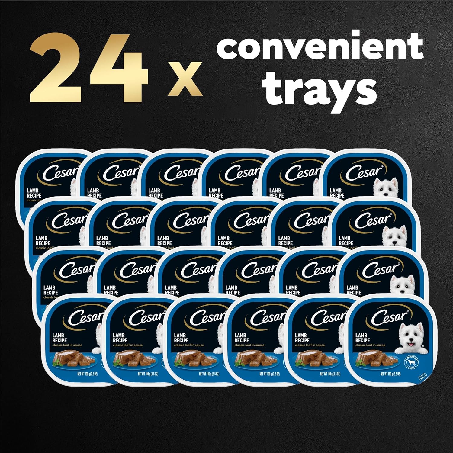 Cesar Wet Dog Food Classic Loaf in Sauce Lamb Recipe, 3.5 oz. Easy Peel Trays (24 Count, Pack of 1)