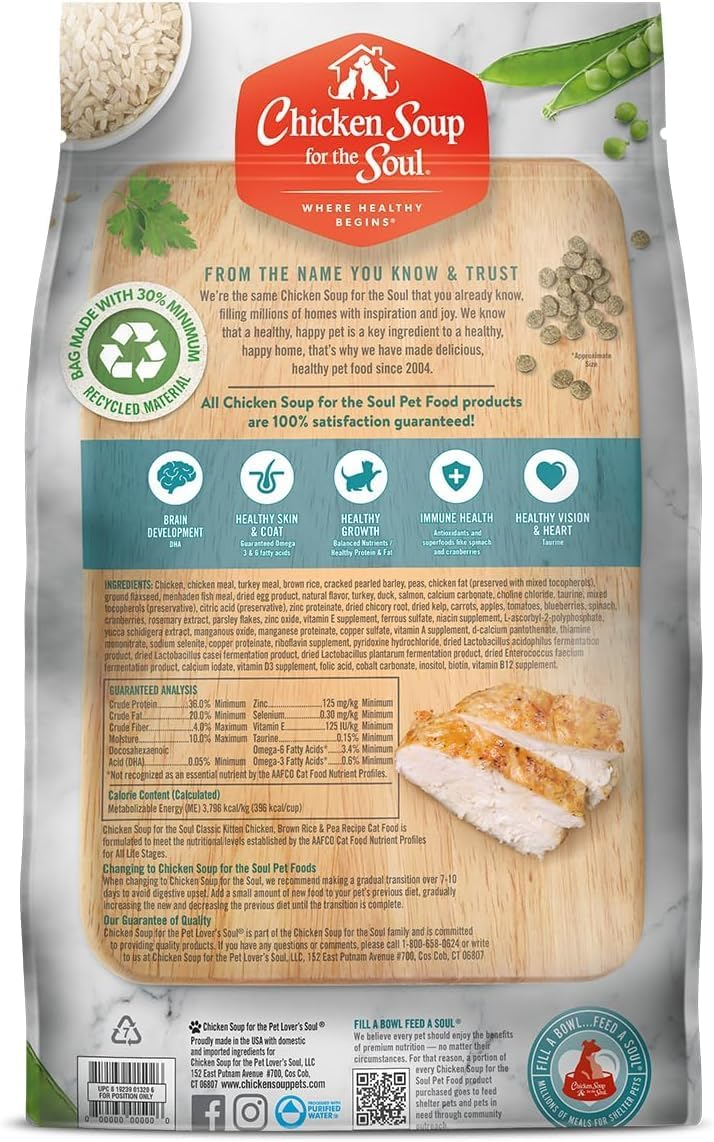Chicken Soup for The Soul Classic Dry Kitten Food, Chicken, Brown Rice & Pea Recipe Soy, Corn & Wheat Free, No Artificial Flavors or Preservatives