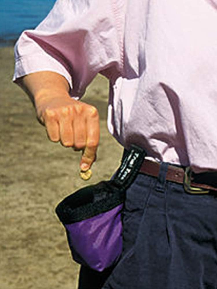 A must-have for dog training: a clip-on dog treat pouch that allows for easy access to rewards...