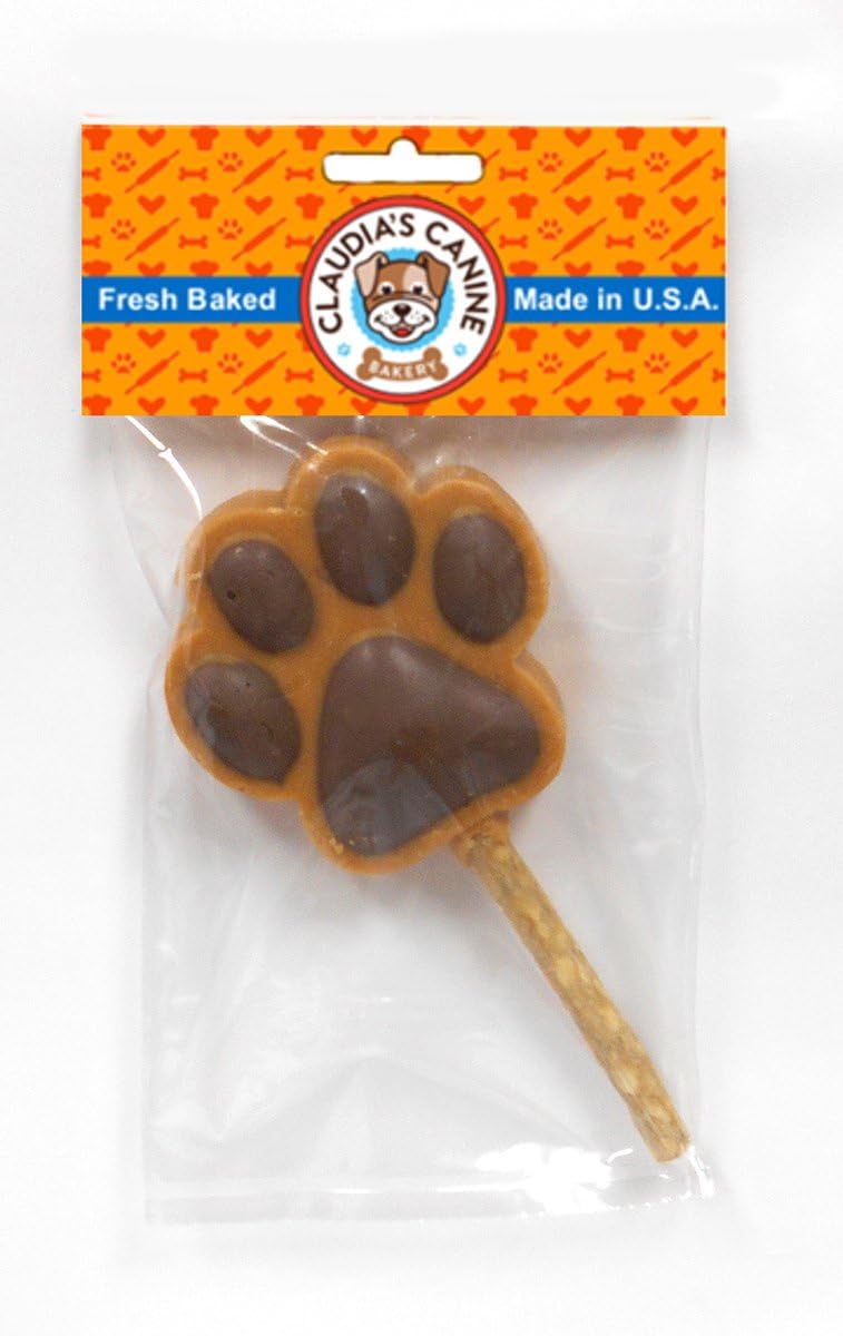 Claudia's Canine Bakery Peanut Butter Paw Print Carob Suckers. Made in The USA 2.5 oz