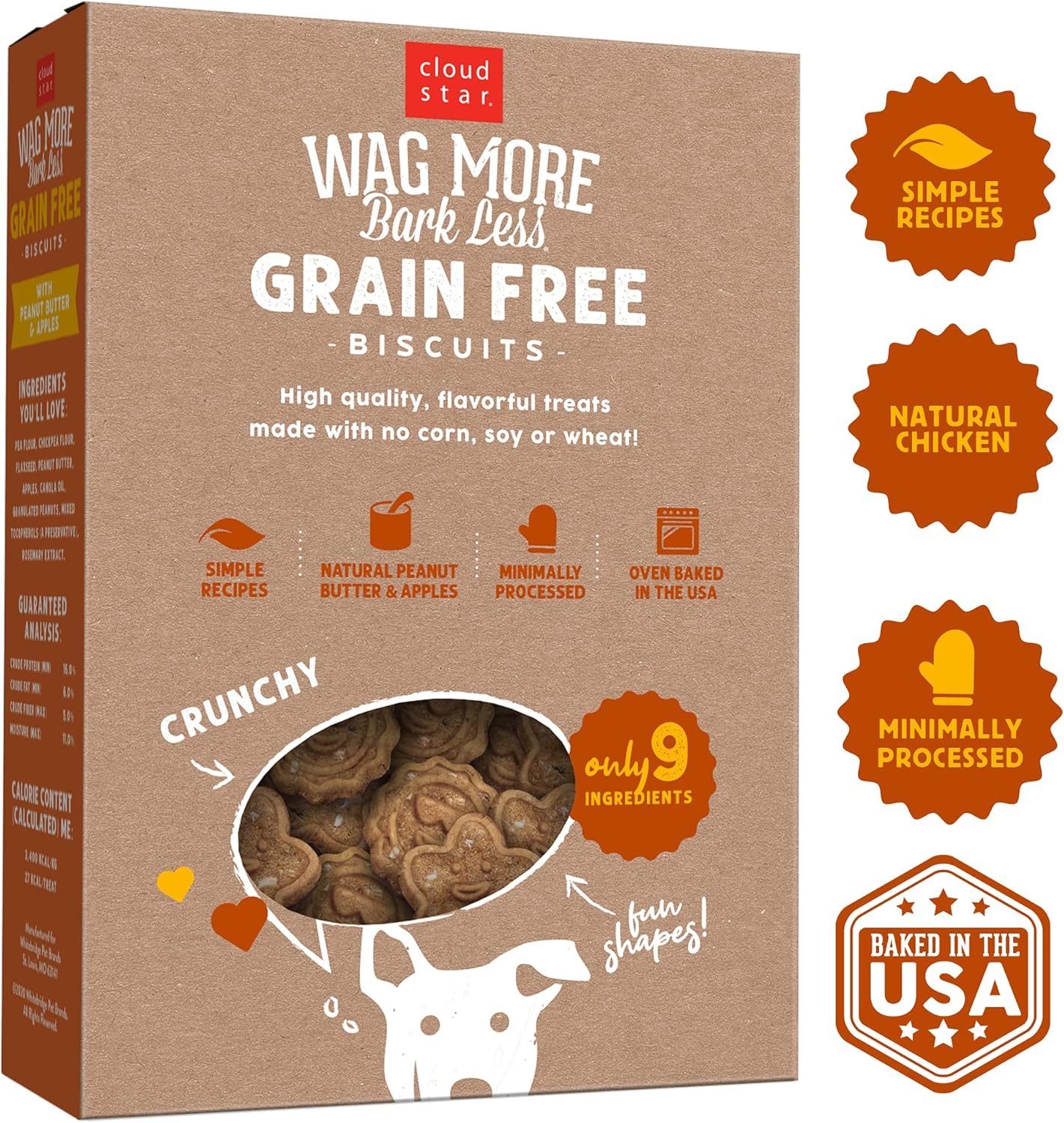 Cloud Star Wag More Bark Less Crunchy Grain Free Dog Treats, Peanut Butter & Apples