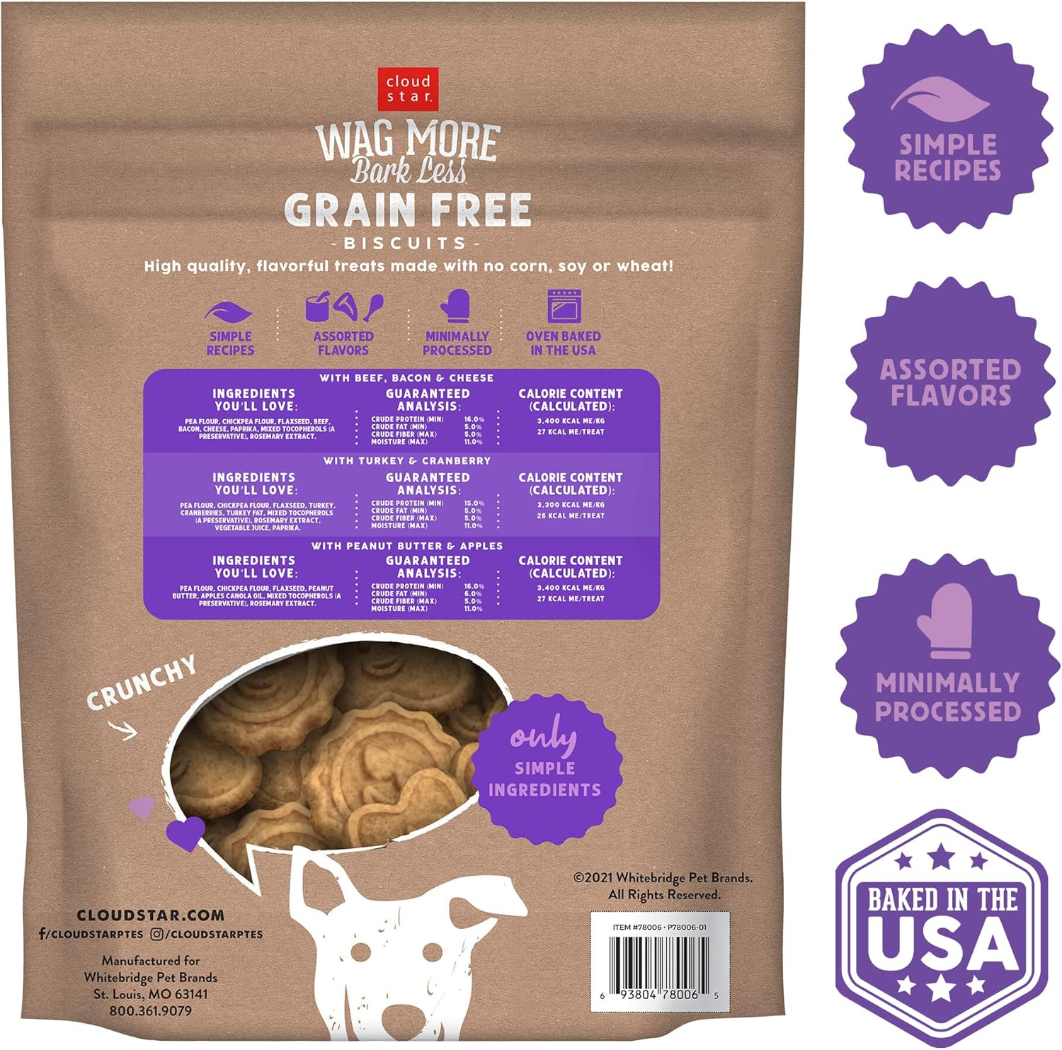 Cloud Star Wag More Bark Less - Dog Treats - Crunchy Biscuits - Grain Free Assorted Flavors