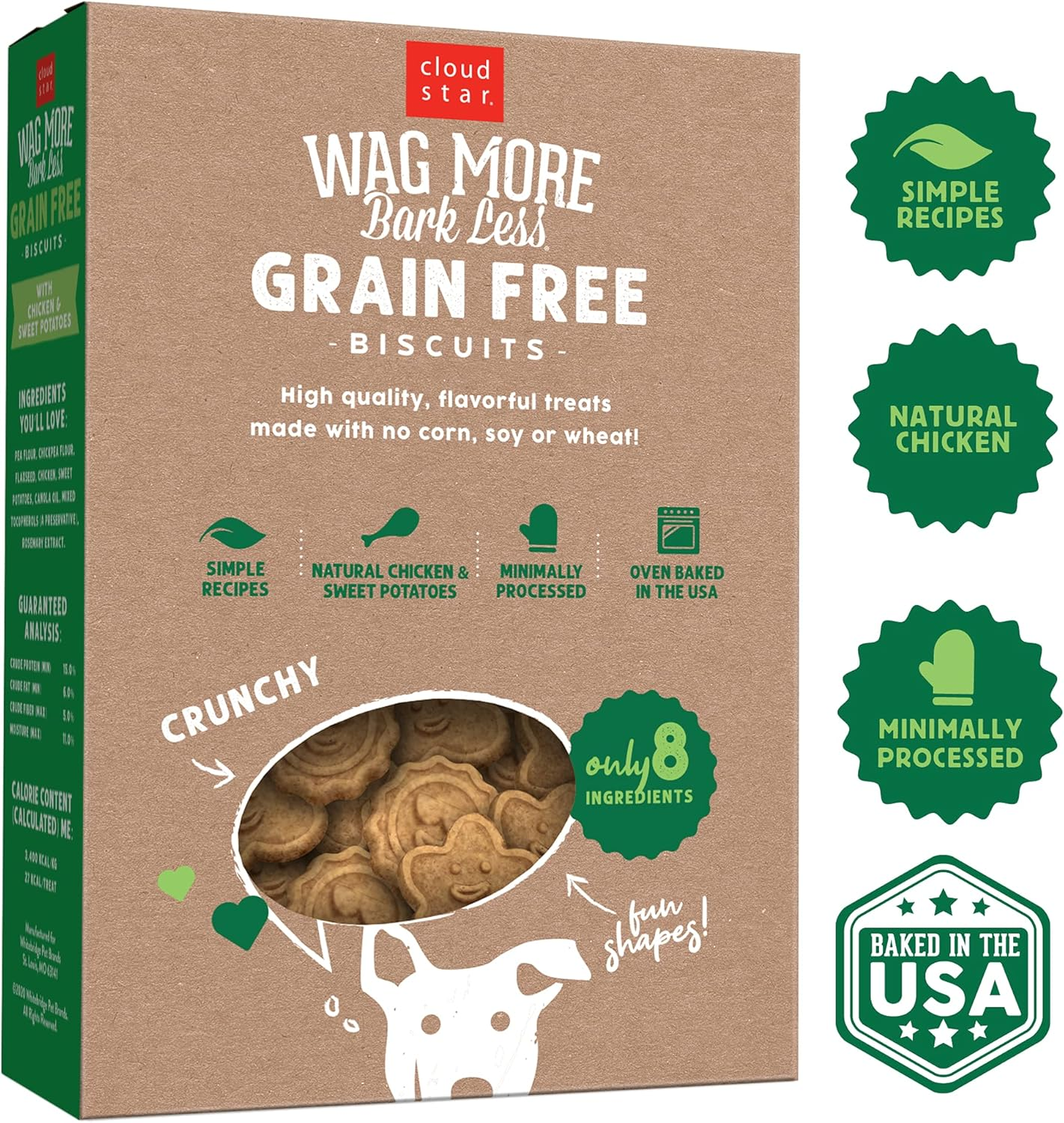 Cloud Star Wag More Bark Less - Dog Treats - Crunchy Biscuits - Grain Free Chicken & Sweet Potato