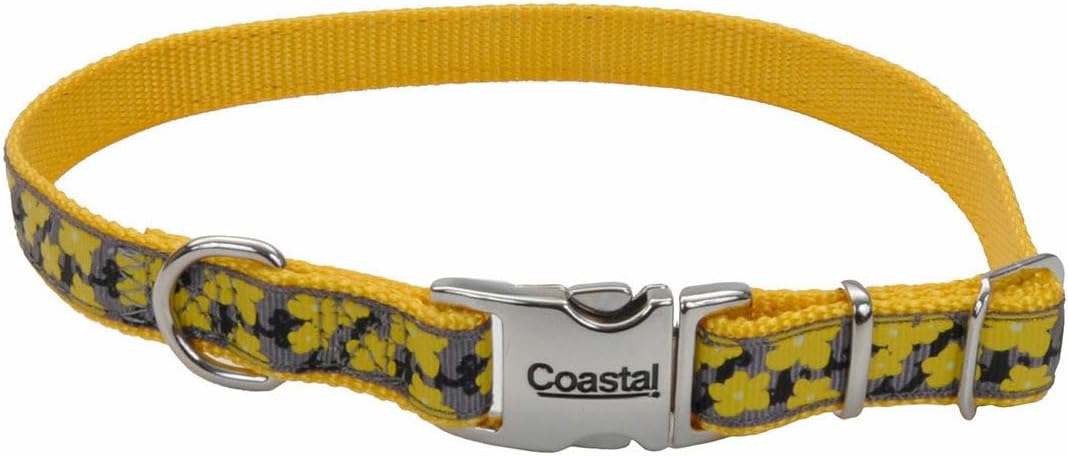 Coastal Pet - Ribbon - Adjustable Dog Collar with Metal Buckle, Yellow Buttercup