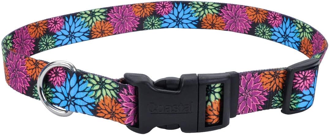 Coastal Pet Styles Adjustable Dog Collar - Stylish Patterned Fabrics - Snap-Lock Buckle - Adjustable Dog Collar - for Small, Medium or Large Dogs - Wildflower