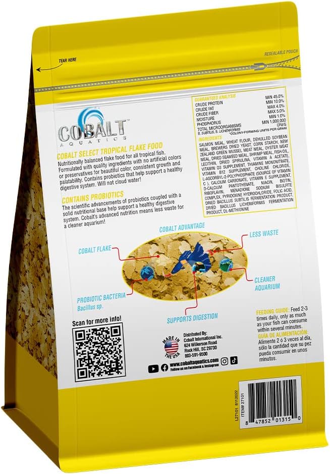 - Ingredients sourcCobalt’s advanced nutrition means less waste for a cleaner aquarium!