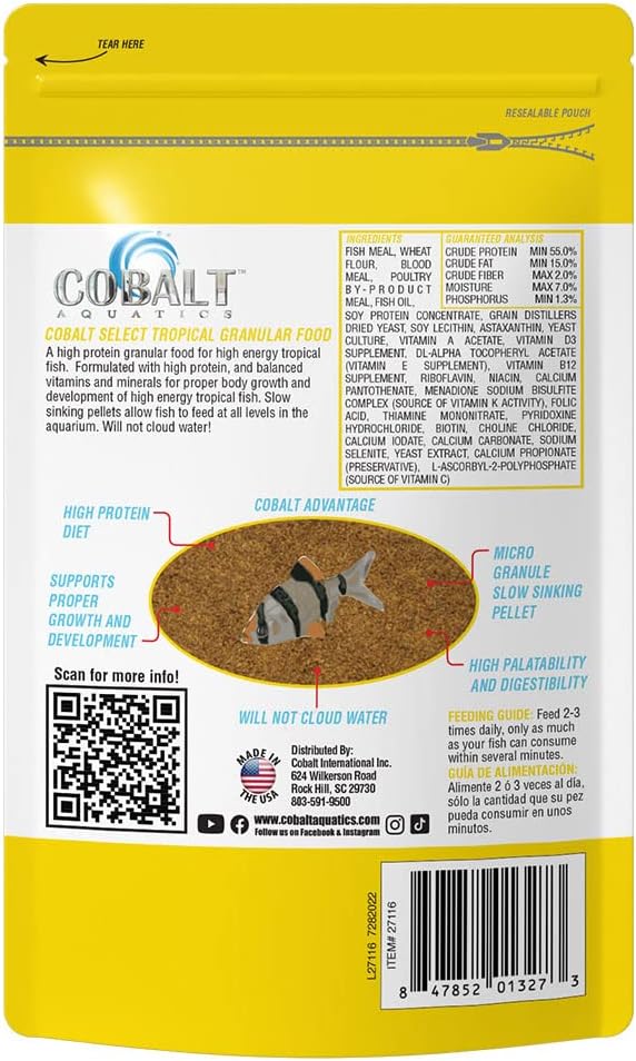 - Ingredients sourcCobalt’s advanced nutrition means less waste for a cleaner aquarium!