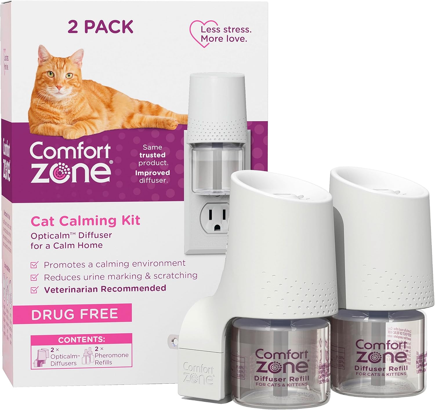 Comfort Zone Savings Kit: 2 Cat Calming Diffusers & 2 Refills; Cat Pheromones Help Anxiety; Reduce Stress, Urine Marking, Scratching