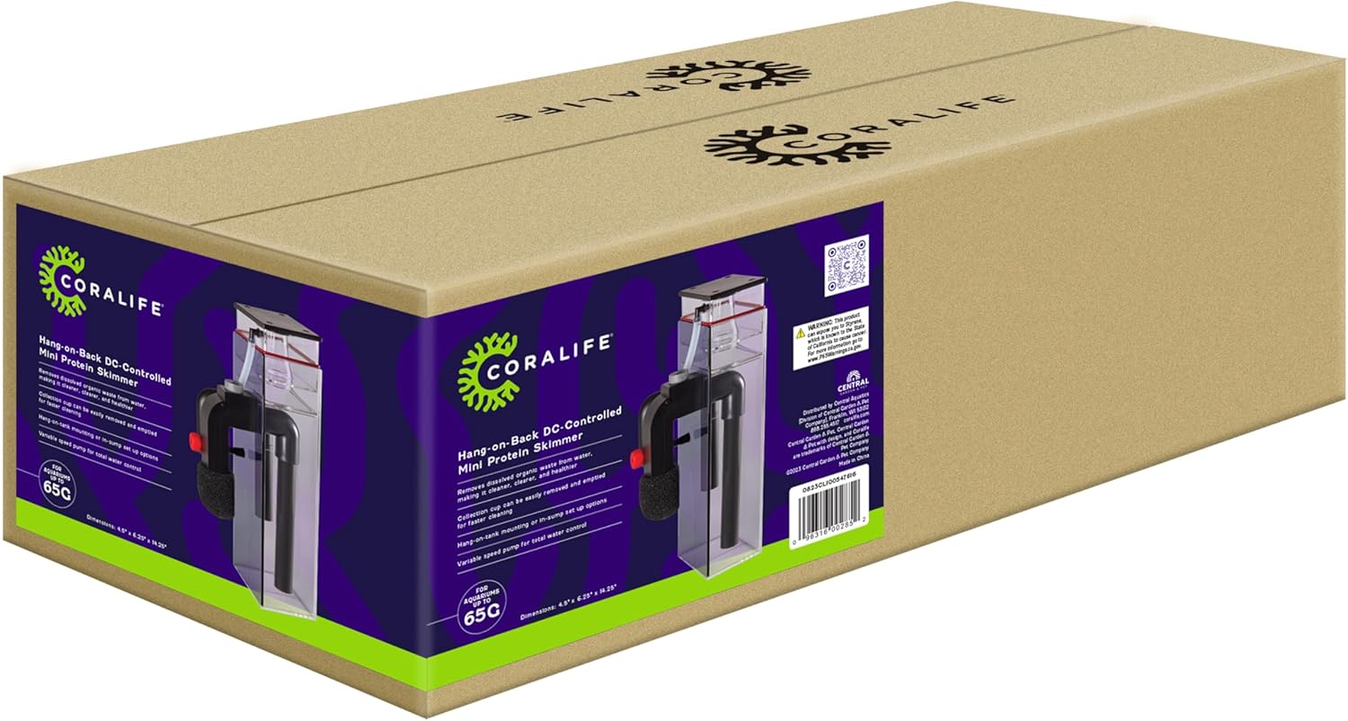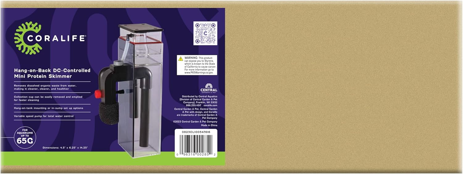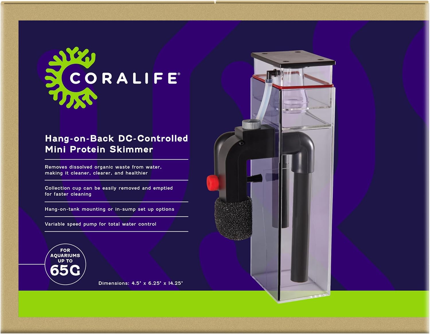 Coralife Aquarium Fish Tank Marine Salt Water DC-Controlled Variable Speed Mini Protein Skimmer, Up To 65 Gallons