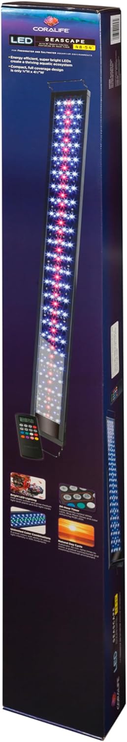 Coralife Aquarium Fish Tank Marine Salt Water or Fresh Water Seascape LED Adjustable Light with Remote Control, 48"-54"