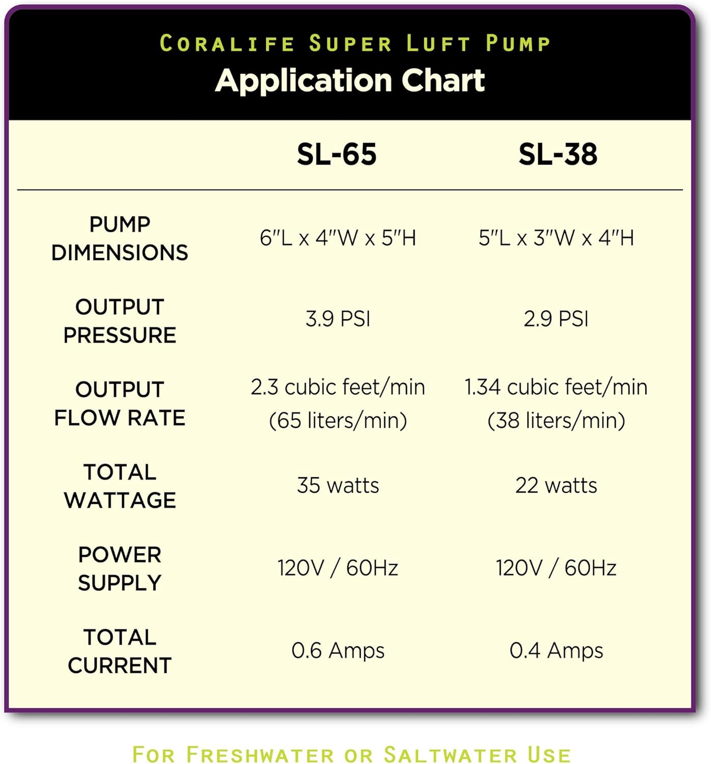 Coralife Aquarium Fish Tank Marine Salt Water or Fresh Water SL-65 Super Luft Air Pump