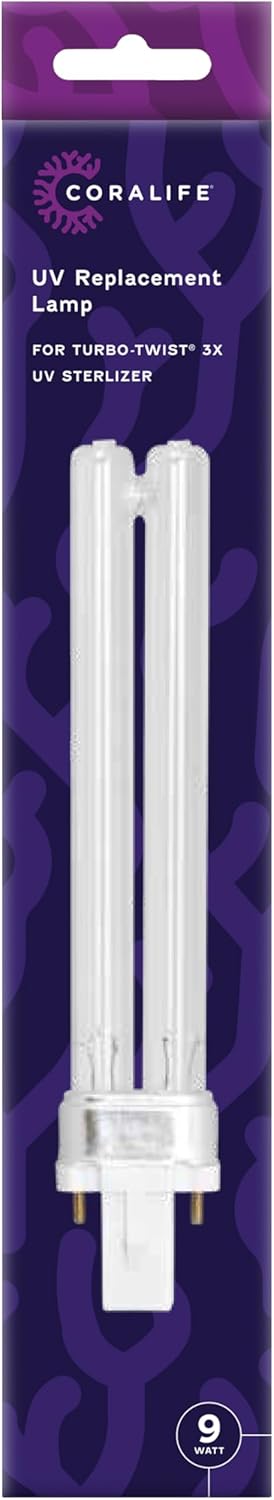 Coralife Aquarium Fish Tank Marine Salt Water Turbo-Twist UV Sterilizer 9 Watt Replacement Bulb, For 3X up to 125 Gallons