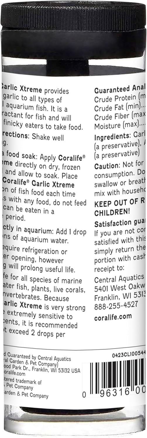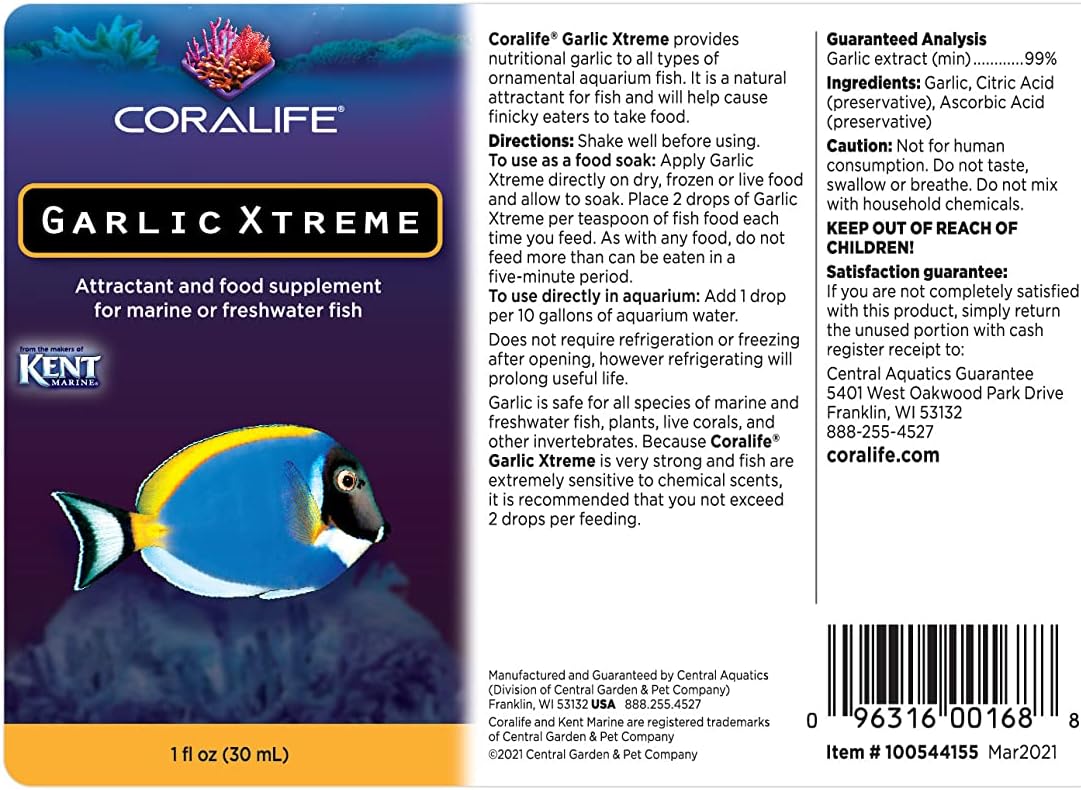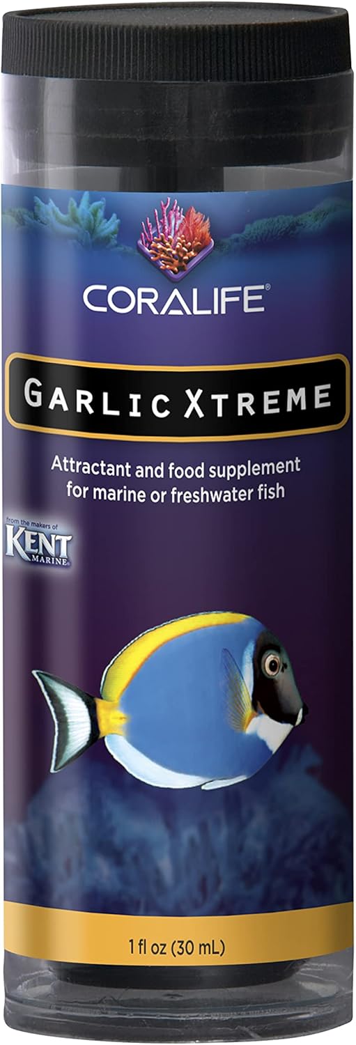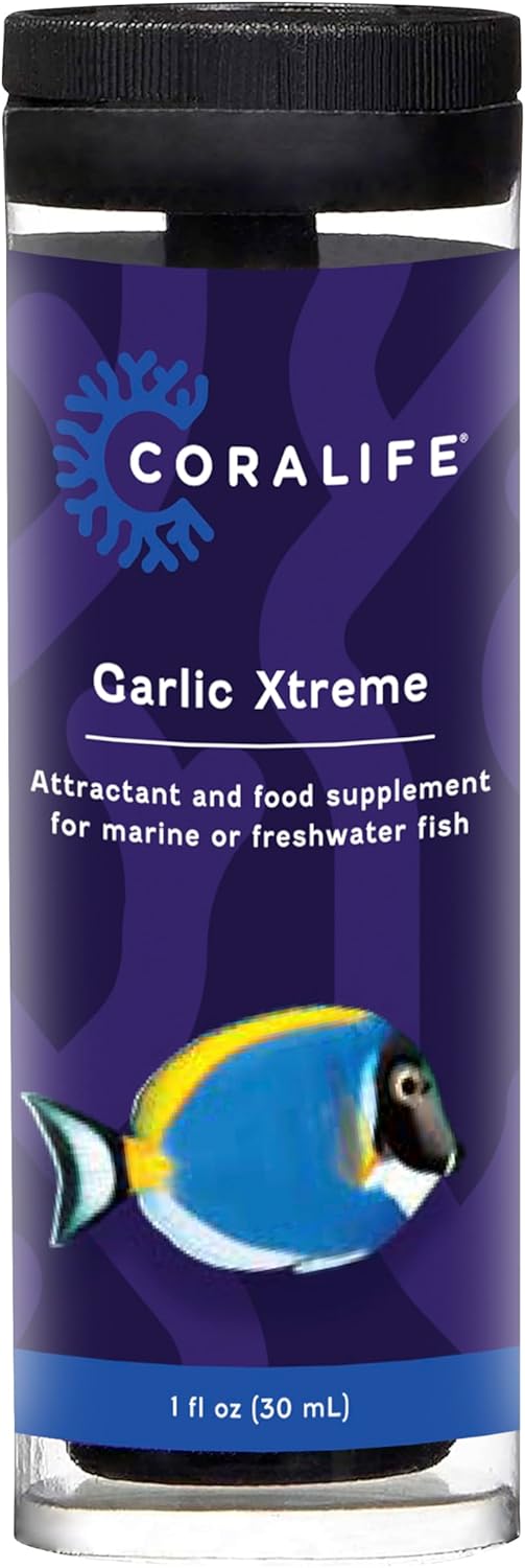 Coralife Fish Tank Aquarium Garlic Xtreme Attractant and Food Supplement for Saltwater Marine or Freshwater Fish, 1 oz