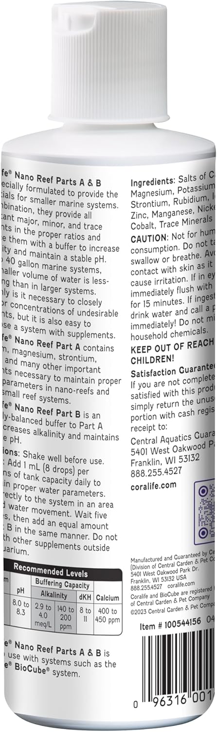 Coralife Saltwater Fish Tank Aquarium Nano Reef Part A and B, 8 oz
