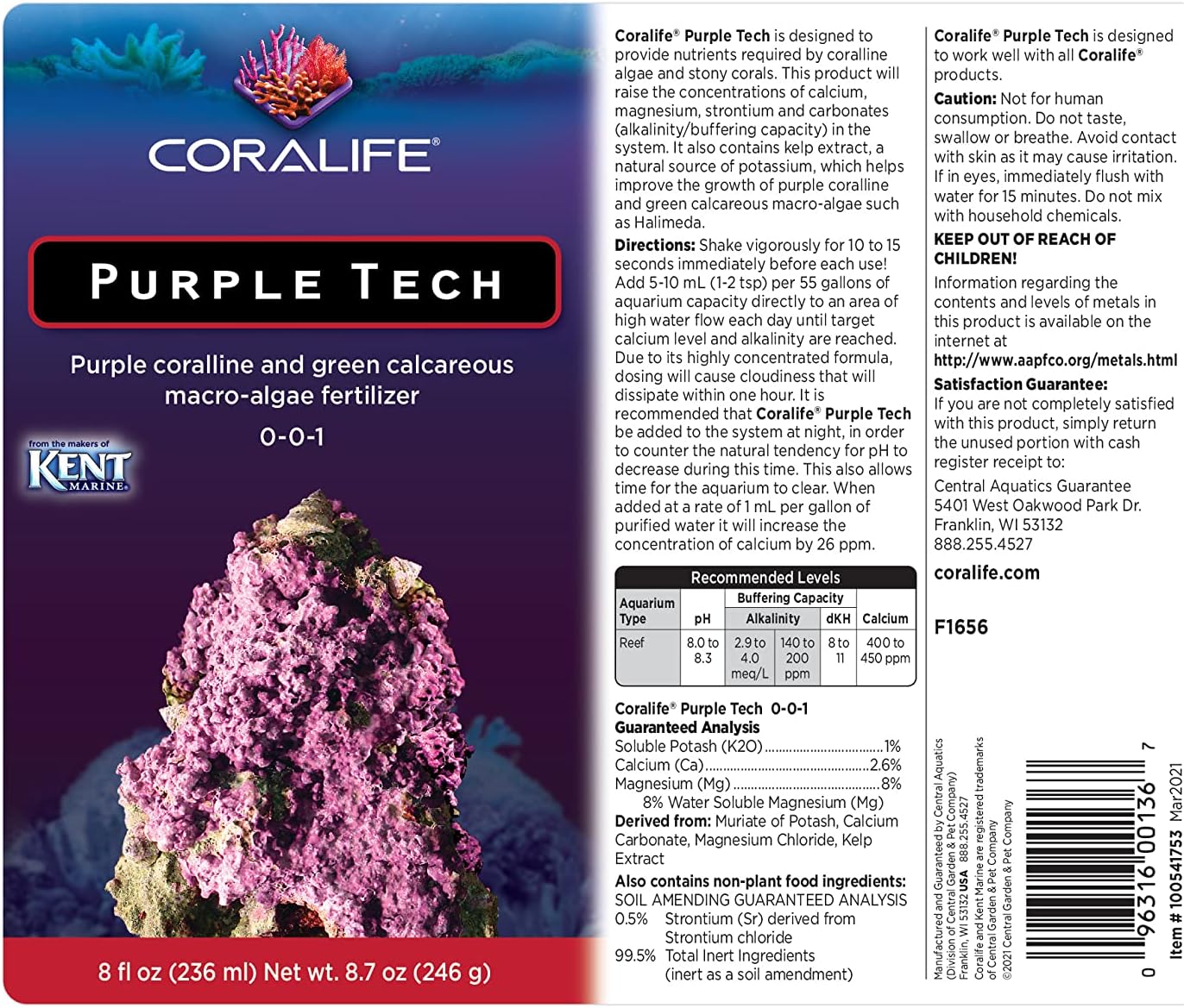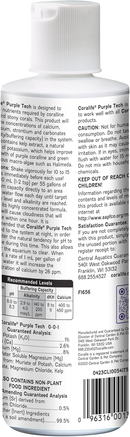 Coralife Saltwater Fish Tank Aquarium Purple Tech Purple Corallien and Green Calcareous Macro-Algae Stimulator, 8.7 oz