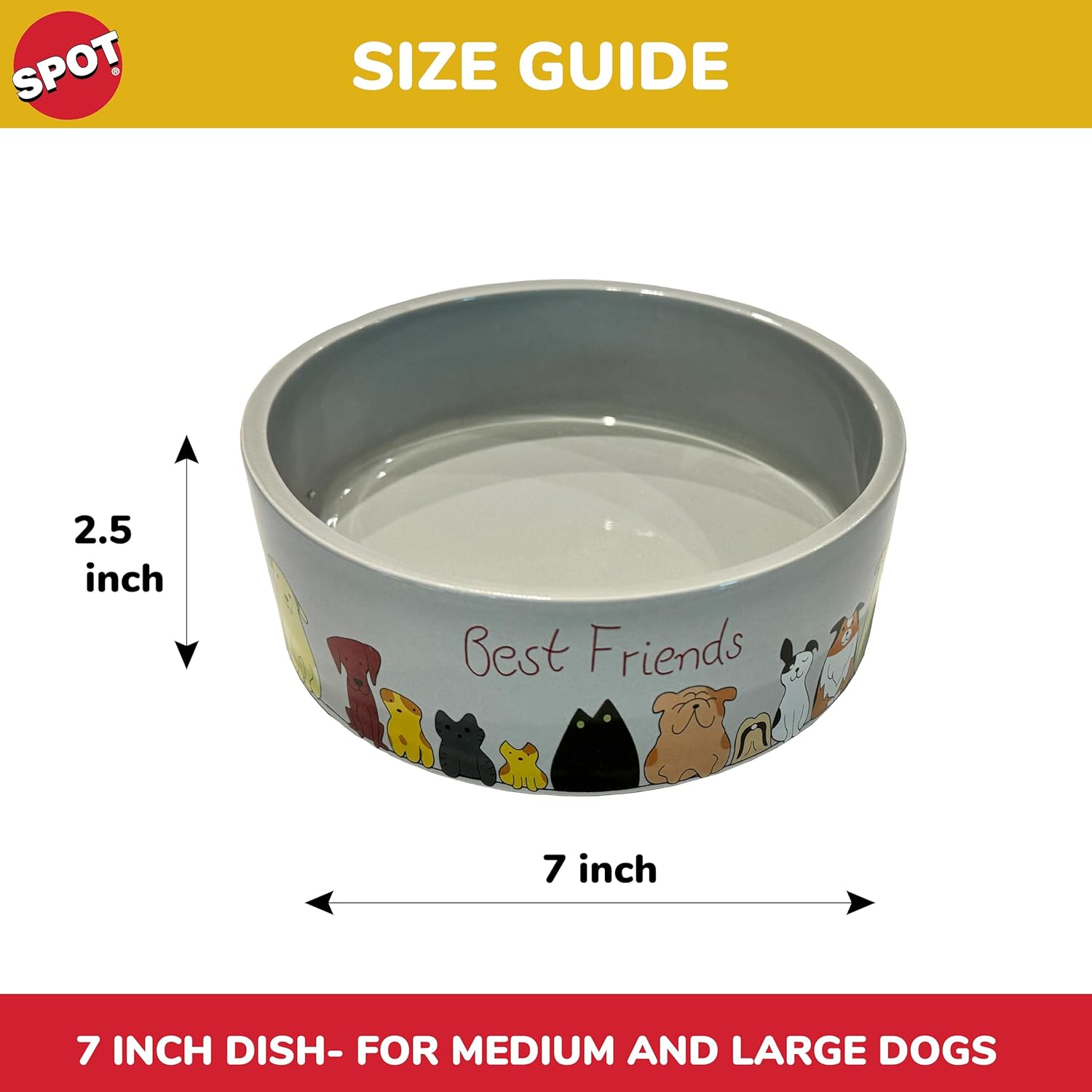 SPOT Best Friends Pet Food Dish - Food or Water Ceramic Bowl for Pets, Ideal for Medium & Large Dogs, Dishwasher Safe, 5 Cups (40oz) Capacity - 7in, Light Grey