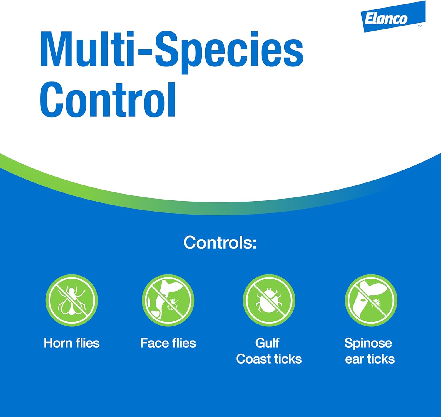 Controls horn flies, face flies, Gulf Coast ticks, and spinose ear ticks on beef and dairy cattle