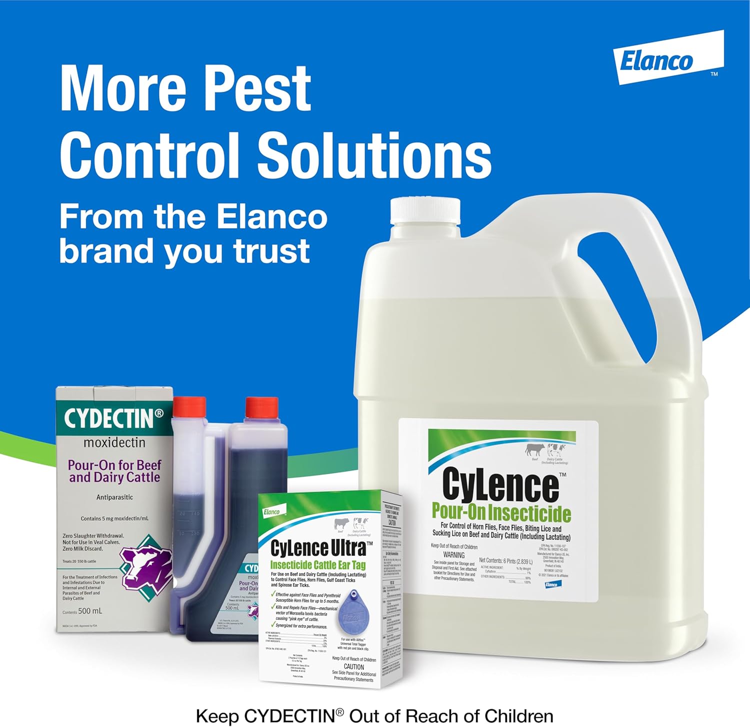 Protect your beef and dairy cattle, including lactating cows, with CyLence Ultra® Insecticide Cattle Ear Tags. These ear tags utilize a synergized fifth-generation pyrethroid insecticide (beta-cyfluthrin) to provide powerful, long-lasting control of common pests such as horn flies, face flies, Gulf Coast ticks, and spinose ear ticks.