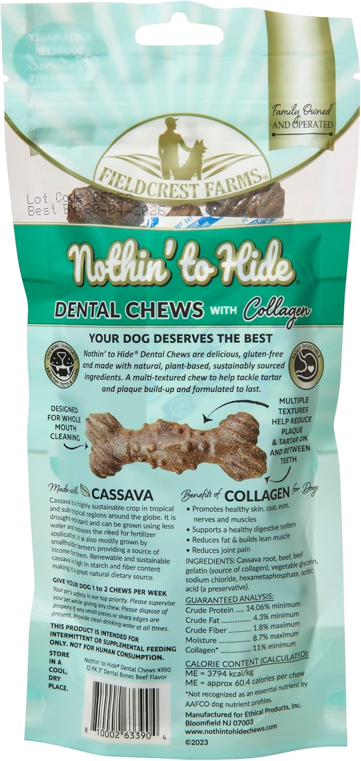 Fieldcrest Dental Chews for Dogs, Bone – Tackles Plaque, Tartar, Promotes Dental Health – w/Collagen, Organic, Gluten-Free