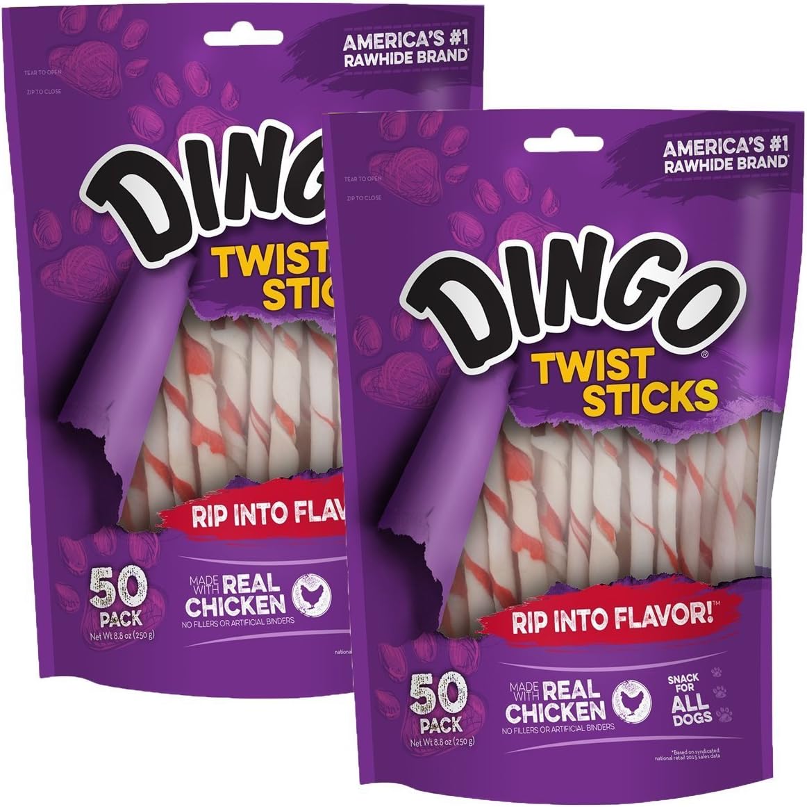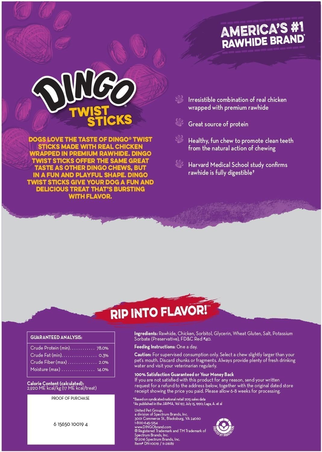 Dingo Twist Sticks 50 Count, Premium Rawhide Treats For Dogs Made with Real Chicken 50-Count