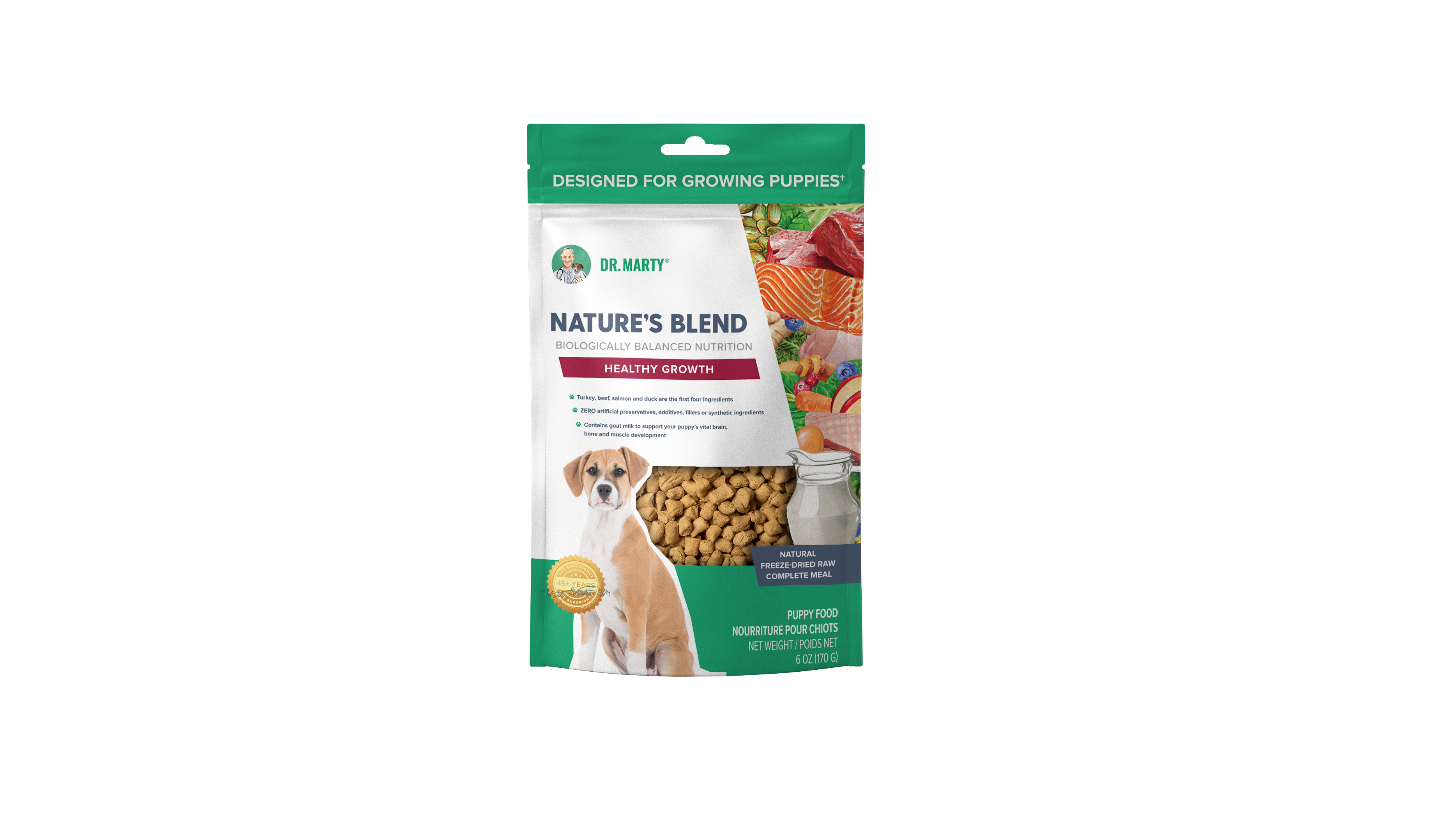 Dr. Marty Nature’s Blend – Healthy Growth is a premium freeze-dried raw food made specifically for growing puppies. It combines premium meat, vegetables, fruit, and key superfoods to support your dog’s strong muscles, sharp mind, healthy heart, active energy, easy digestion, and healthy immune system… with ZERO artificial preservatives, or fillers.