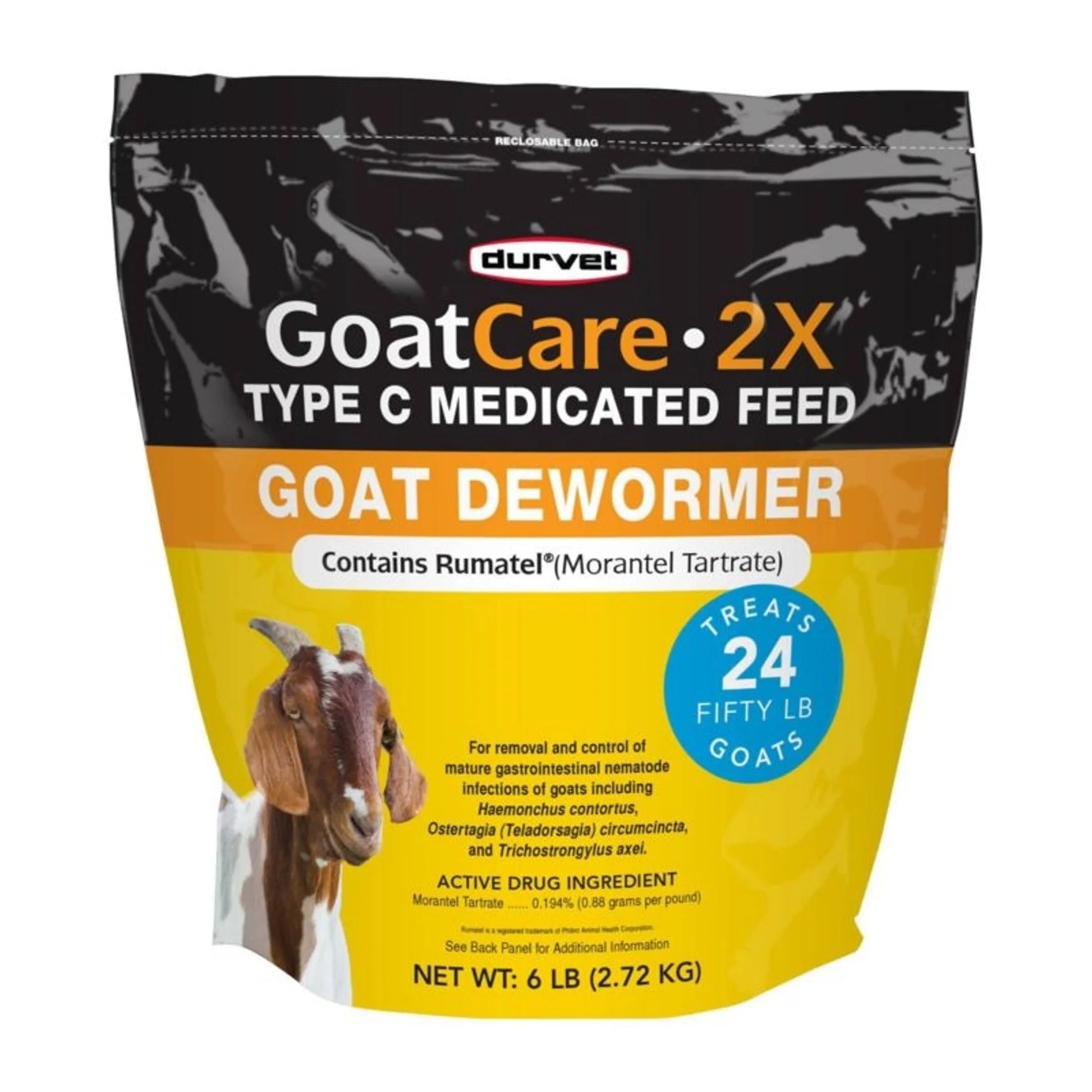 FDA Approved for use in all classes of goats for the removal and control of mature gastrointestinal nematode infections of goats including Haemonchus contortus, Ostertagia (Teladorsagia) circumcinta, and Trichostrongylus axei. Economical double strength formula - 4 oz. per 50 lb of body weight No milk withdrawal. 30 day slaughter withdrawal Convenient, single dose treatment at any time during production cycle, helping you to strategically deworm the entire herd. Palatable, stable in any meal form. Very safe. Rumatel®, when administered during safety trials at twenty times the recommended level, produced no adverse reactions. Backed by years of safe use in goats.