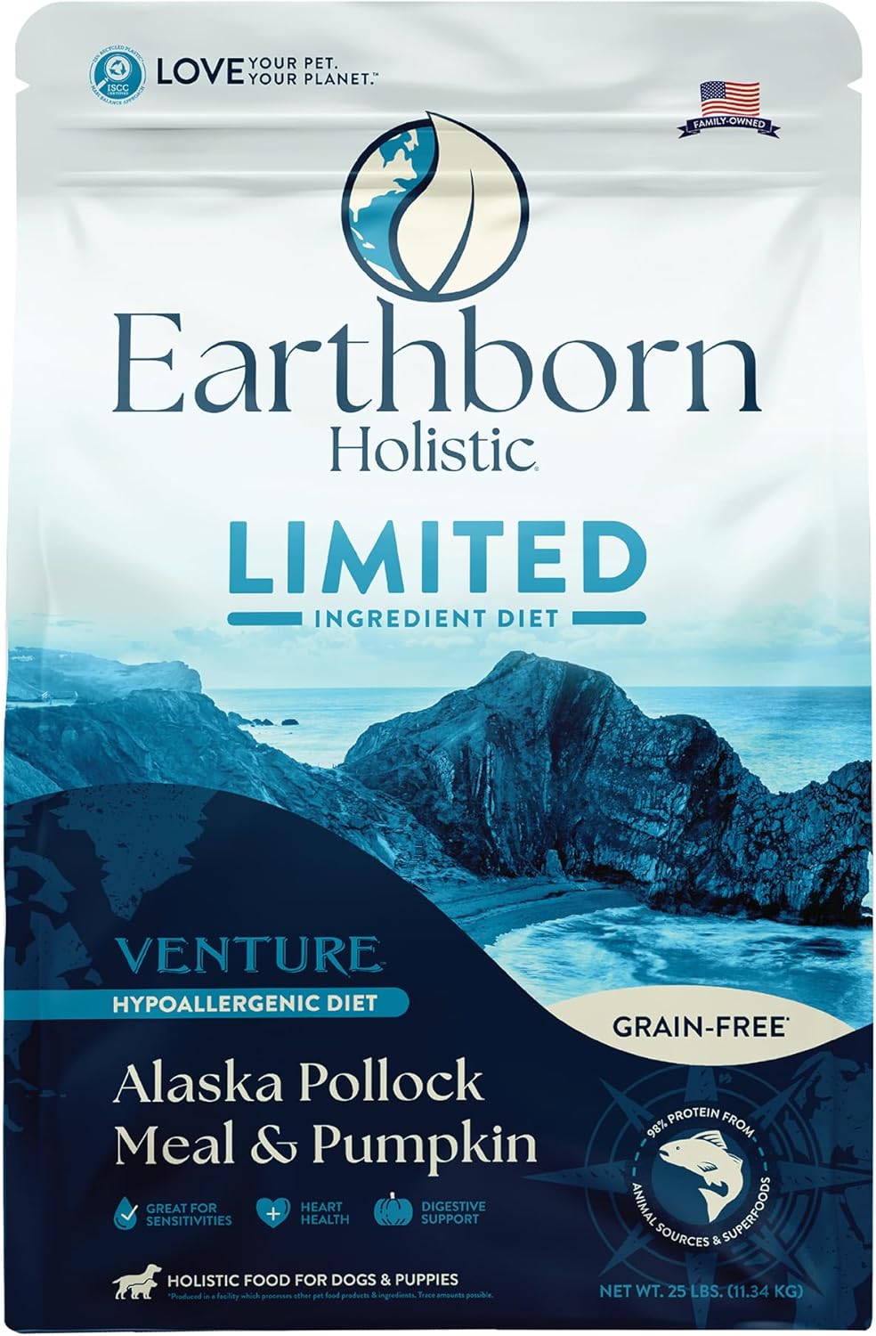 Venture Alaska Pollock Meal & Pumpkin is a limited-ingredient dog food formula crafted with wild-caught Alaska Pollock from the icy waters of the Bering Sea and vine-ripened pumpkins. These limited-ingredient diets are made with Alaska Pollock meal, pumpkin, tapioca, sunflower oil, and flaxseed and is mixed with a lineup of essential vitamins and nutrients to help dogs and puppies with allergies or sensitivities receive great nutrition. Made without grain, gluten, eggs, colorants, fillers, by-products, or artificial flavors, this Venture recipe is everything you want, and nothing you don’t.