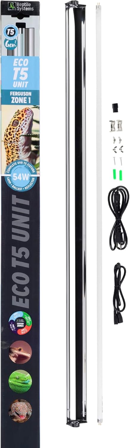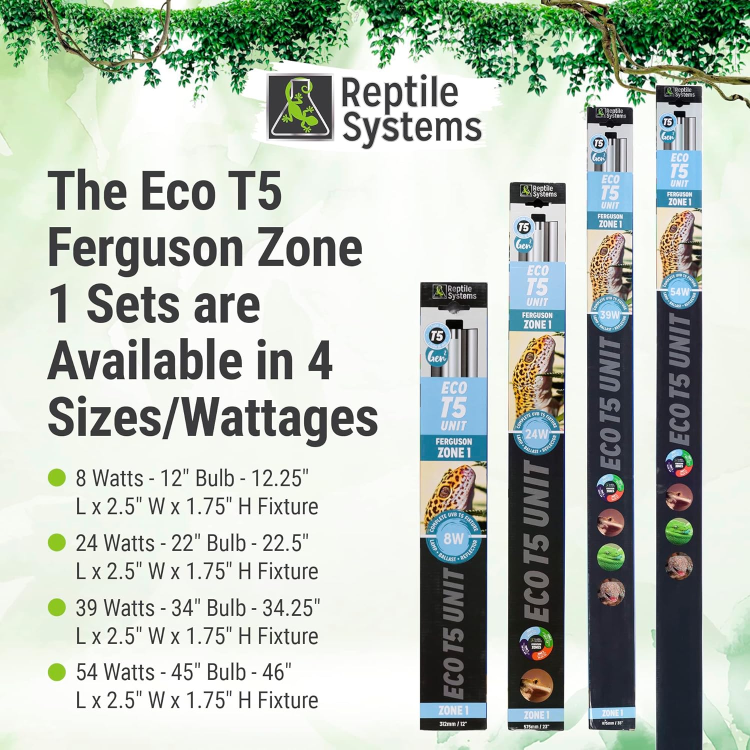 Eco T5 High Output Lighting Kit - Dual Reflector Fixture & Ferguson Zone 1 Lamp 2.4% - Full Spectrum UVA & UVB Amphibian & Reptile Lighting