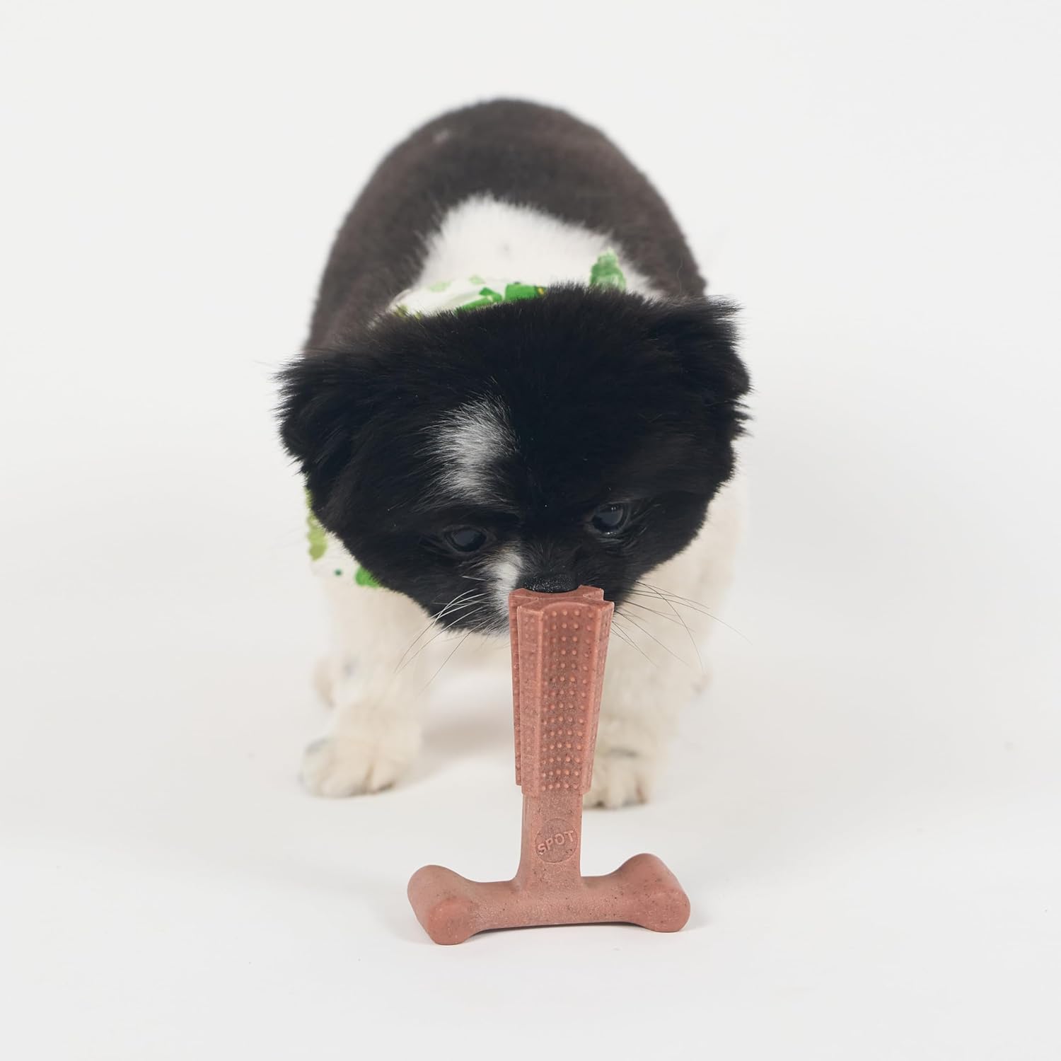 SPOT Bam-Bones Plus T Bone - Bamboo Fiber & Nylon, Durable Long Lasting Dog Chew for Aggressive Chewers – Great Toy for Adult Dogs & Teething Puppies Under 30lbs, Non-Splintering, 4in, Beef Flavor