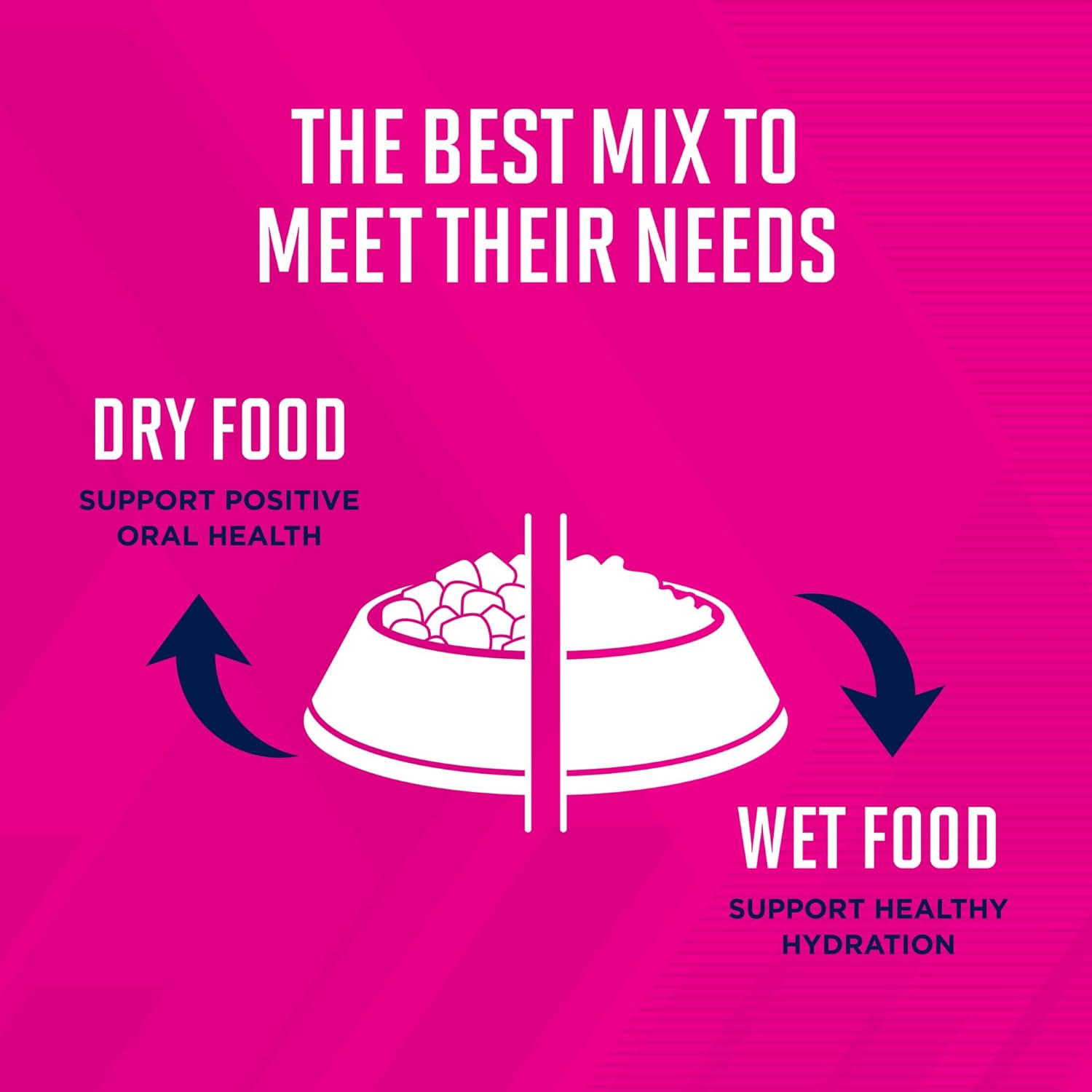 With a dry and wet feeding routine, dry food supports positive oral health while wet food supports healthy hydration.