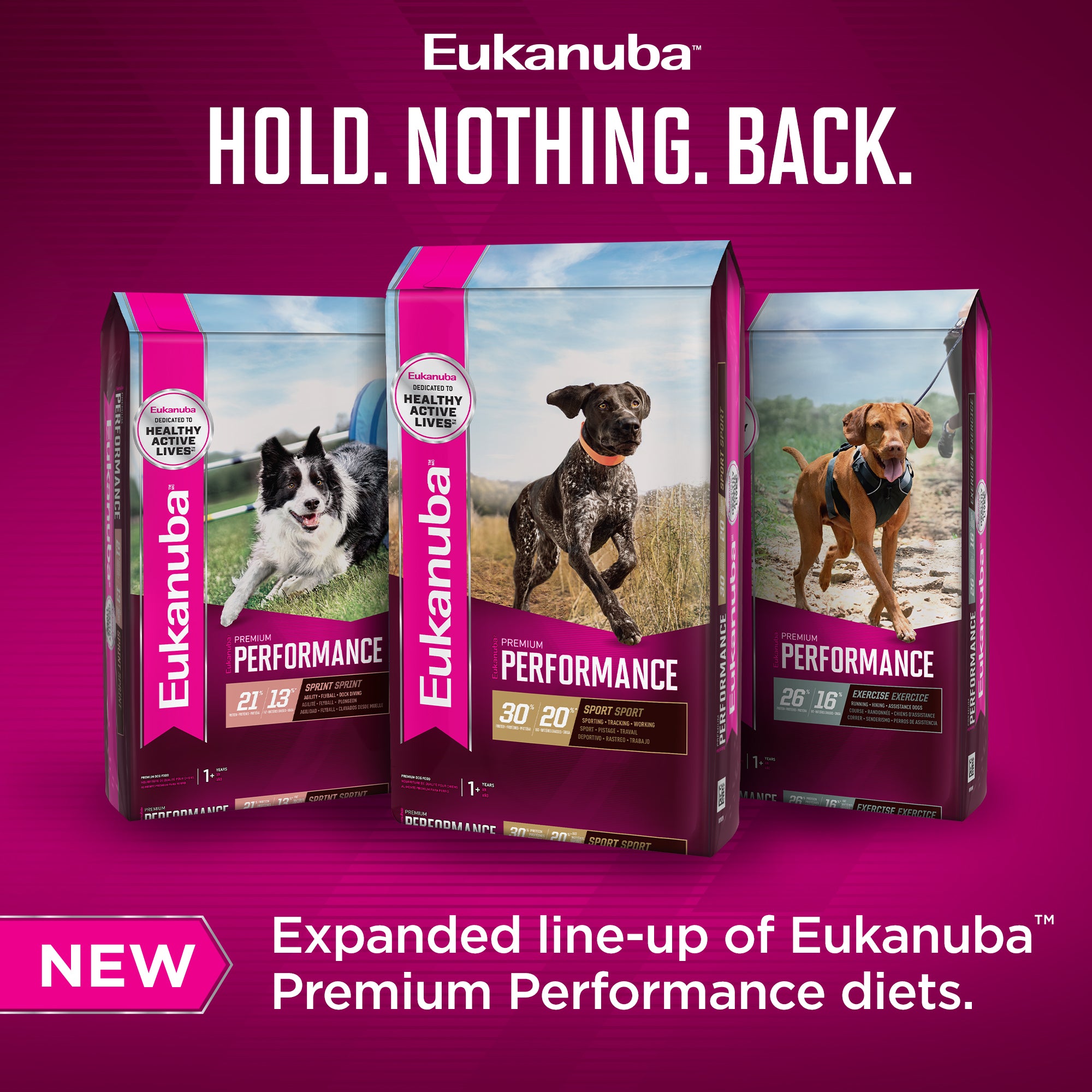 During competitions and high-intensity activities, sprinting and working dogs need fast bursts of energy. Eukanuba(TM) Premium Performance 21/13 SPRINT Adult Dog Food Dry Formula has scientifically tailored carbohydrate levels to help maintain peak performance during activities such as flyball, agility, dock diving, and other short-burst activities. With a minimum of 21% protein and 13% fat, this dry dog food helps provide the nutrition your competitive dog needs. The highly palatable dry dog kibble helps promote agile joints with glucosamine, chondroitin sulfate, and EPA, and an enhanced* blend of fibers and prebiotics helps support digestion. It delivers DHA and antioxidants to help support healthy brain function, plus a scientifically tailored antioxidant cocktail to help defend against free radicals. Eukanuba Premium Performance 21/13 SPRINT Adult Dry Dog Food helps your athletic dog be at their peak performance to live the healthy, active life they deserve. *vs. Eukanuba Adult Medium Breed.