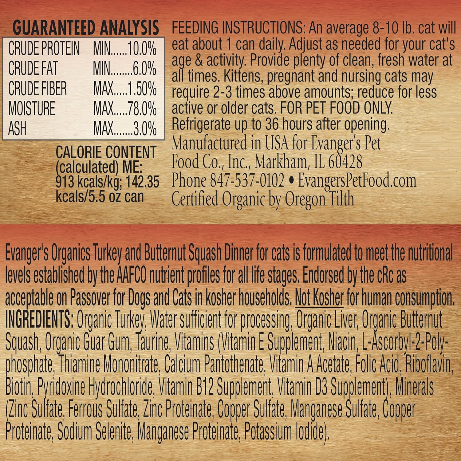 Evanger's Organics Turkey & Butternut Squash Dinner for Cats 24pk/5.5 oz
