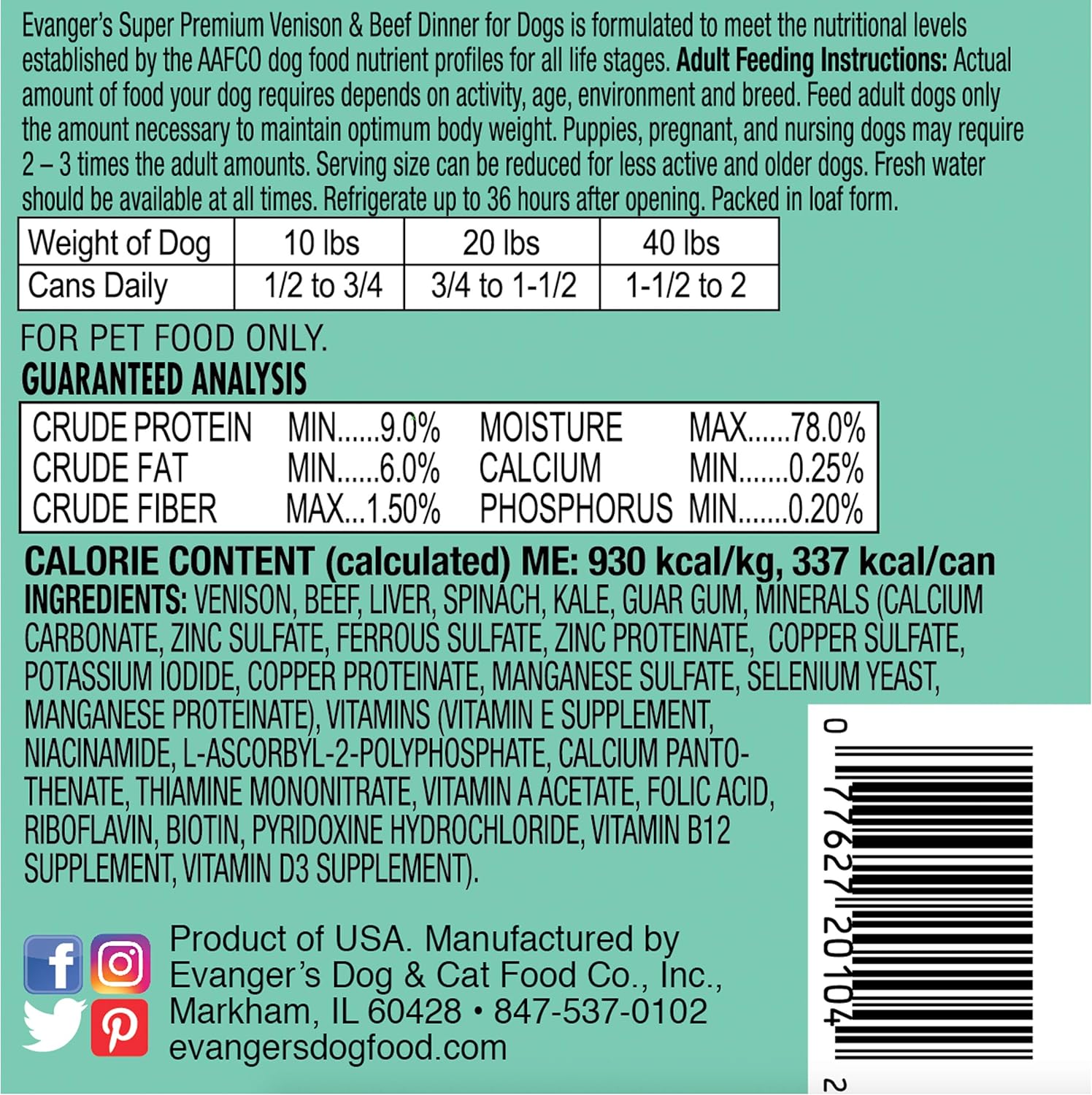 Evanger's Super Premium Limited Ingredient Venison & Beef Dinner for Dogs, 12.5 oz(Pack of 12)