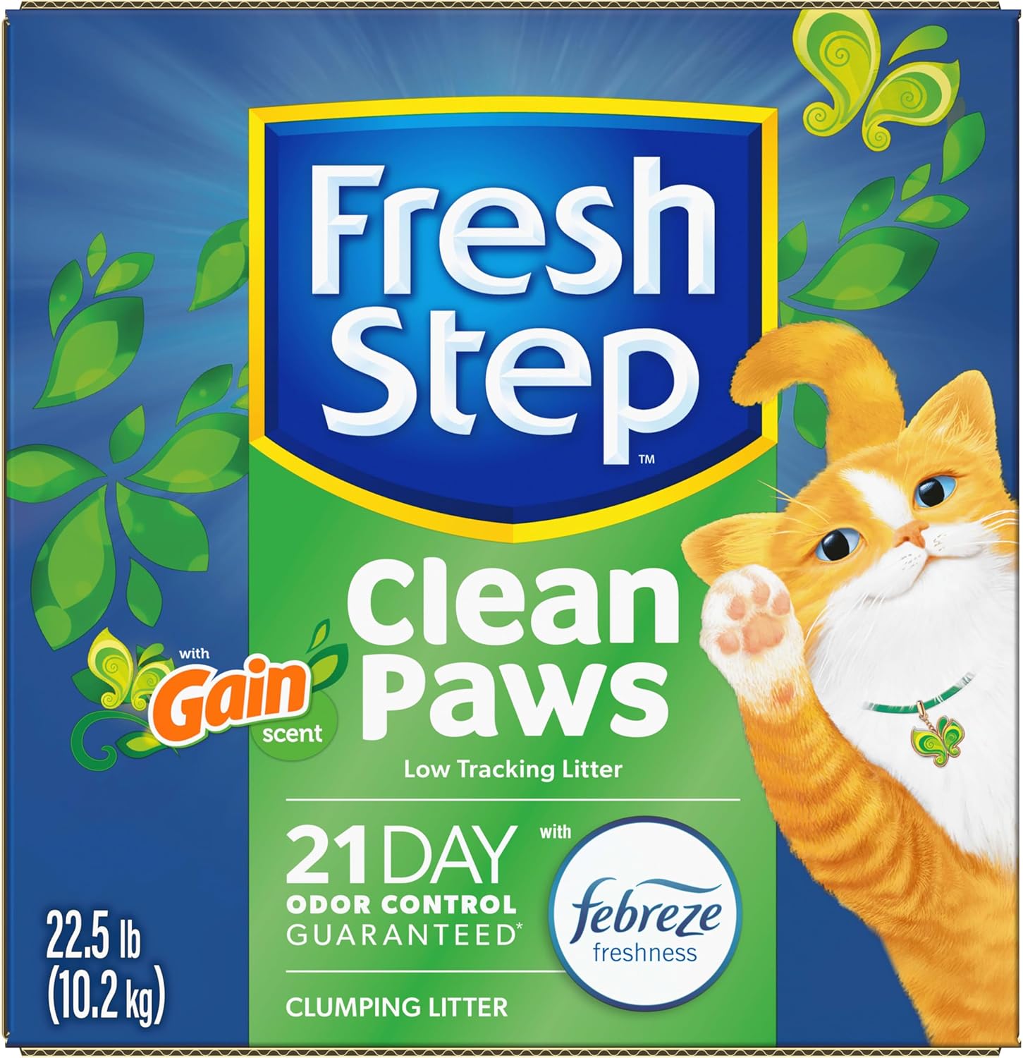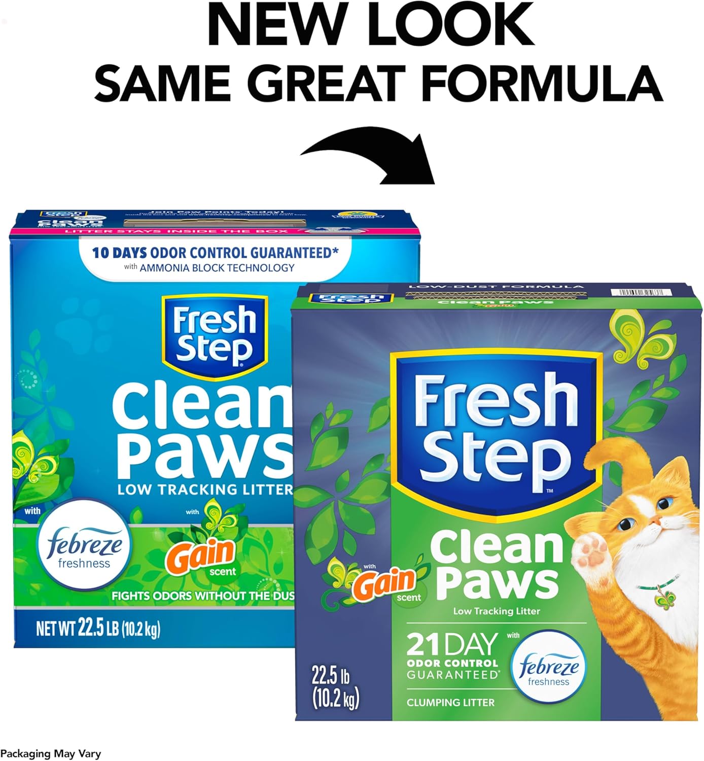 Fresh Step Clean Paws Cat Litter With Febreze Freshness With Febreze Gain Scent, Low-Tracking Clumping Litter With Guaranteed Odor Control, 22.5 lb. Box