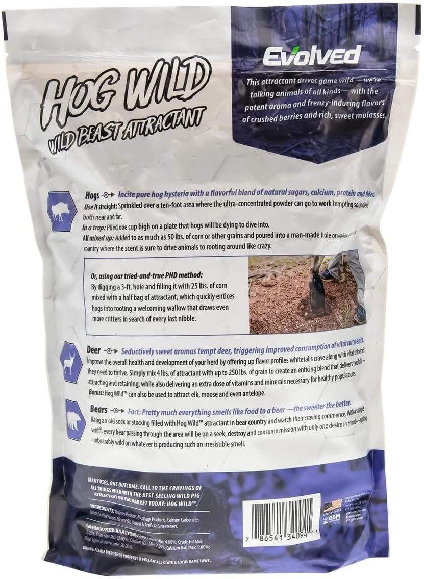 A powerful hog attractant designed to lure feral hogs with irresistible flavor and scent, making it easier for hunters and land managers to manage hog populations.