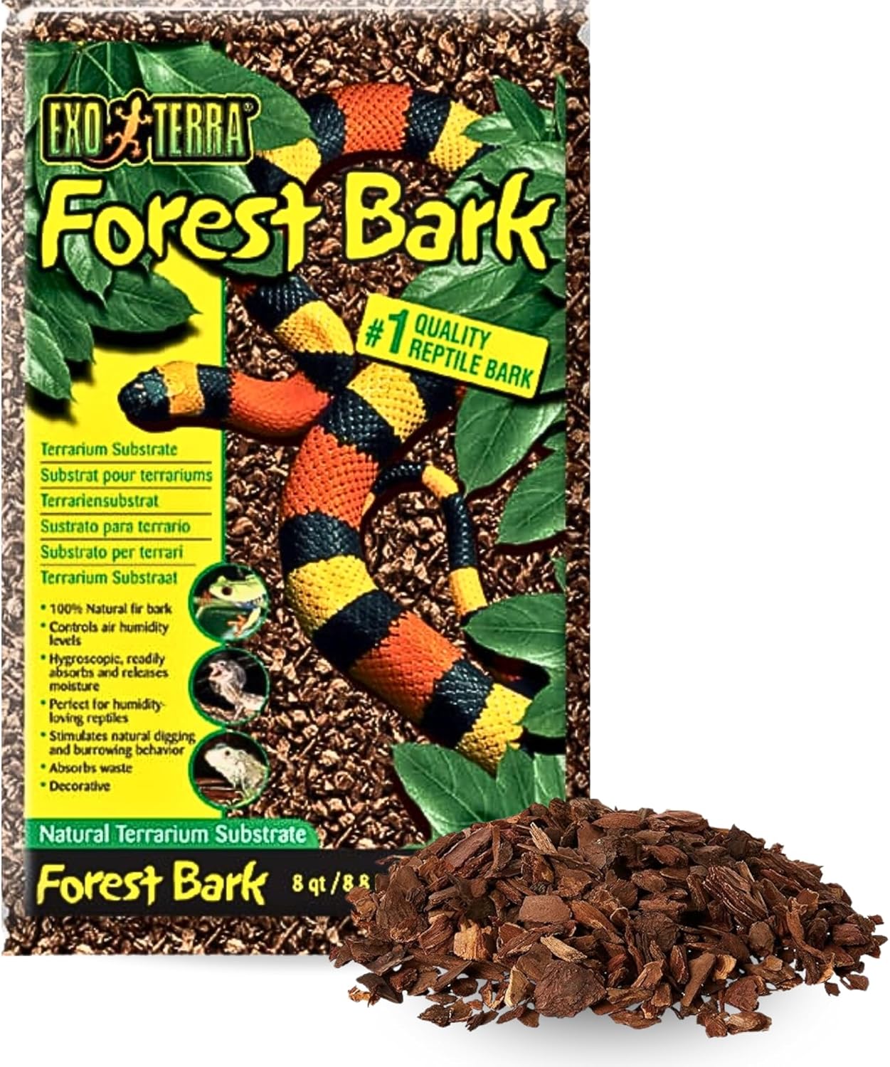 Exo Terra Forest Bark Natural Terrarium Substrate, 8 Quarts, PT2752 | 100% Natural Fir Bark for Reptiles | Hygroscopic Moisture Control | Ideal for Humidity-Loving Reptile | Encourage Digging Behavior