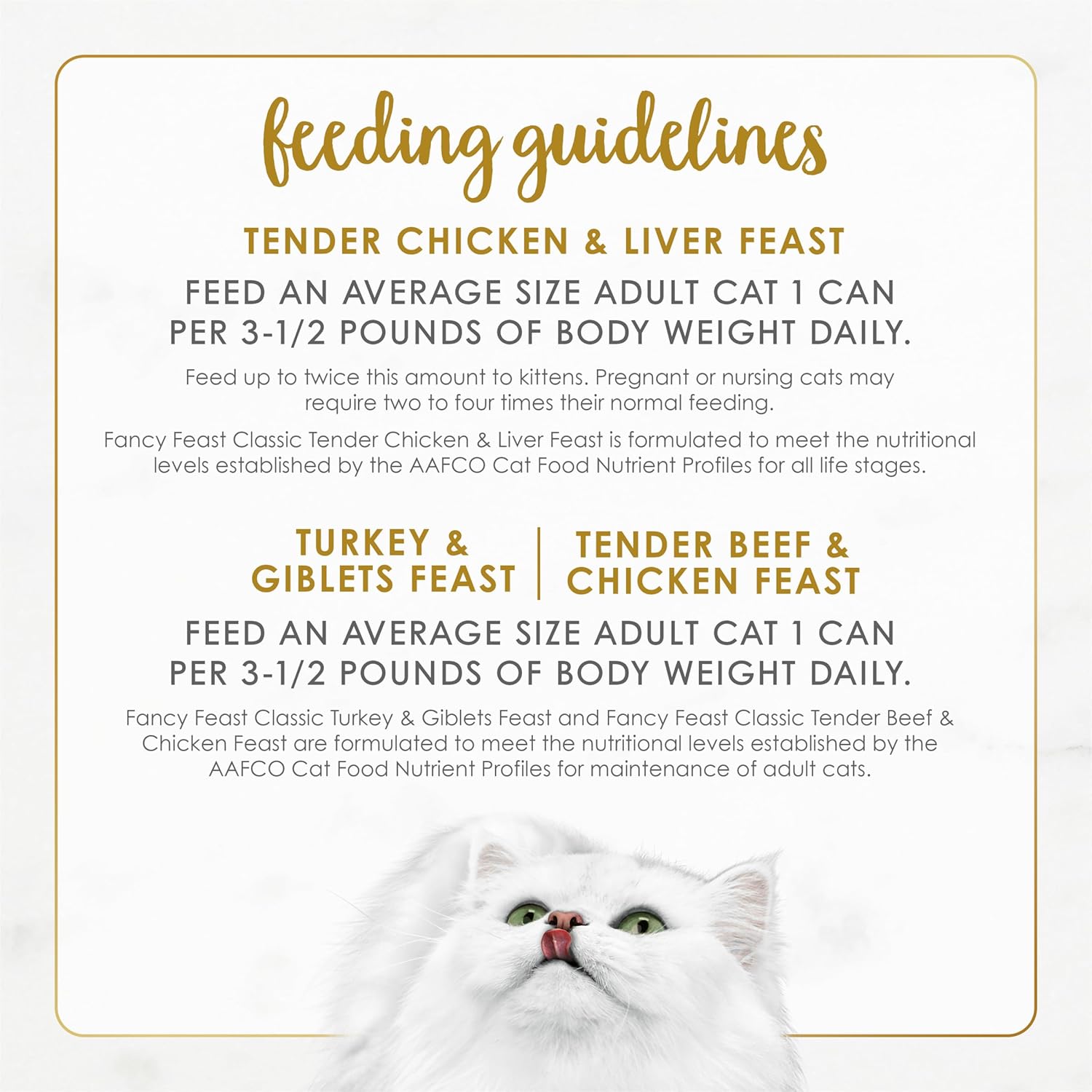 Fancy Feast Poultry and Beef Feast Classic Pate Collection Grain Free Wet Cat Food Variety Pack - (Pack of 30) 3 oz. Cans