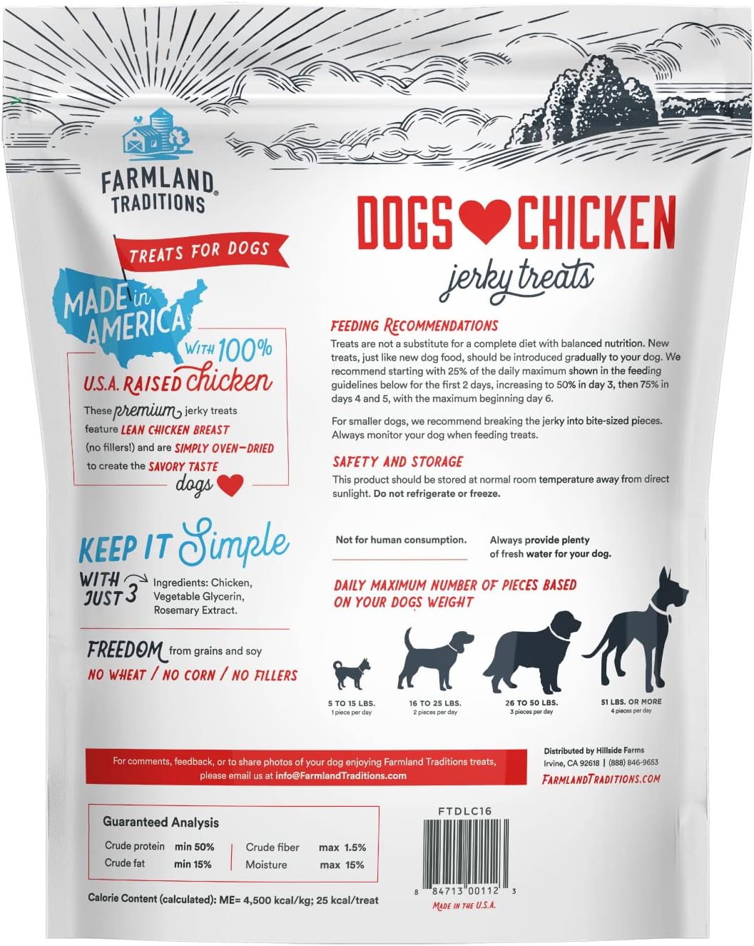 Farmland Traditions Dogs Love Chicken Jerky Dog Treats with Only 3 Ingredients and No Fillers
