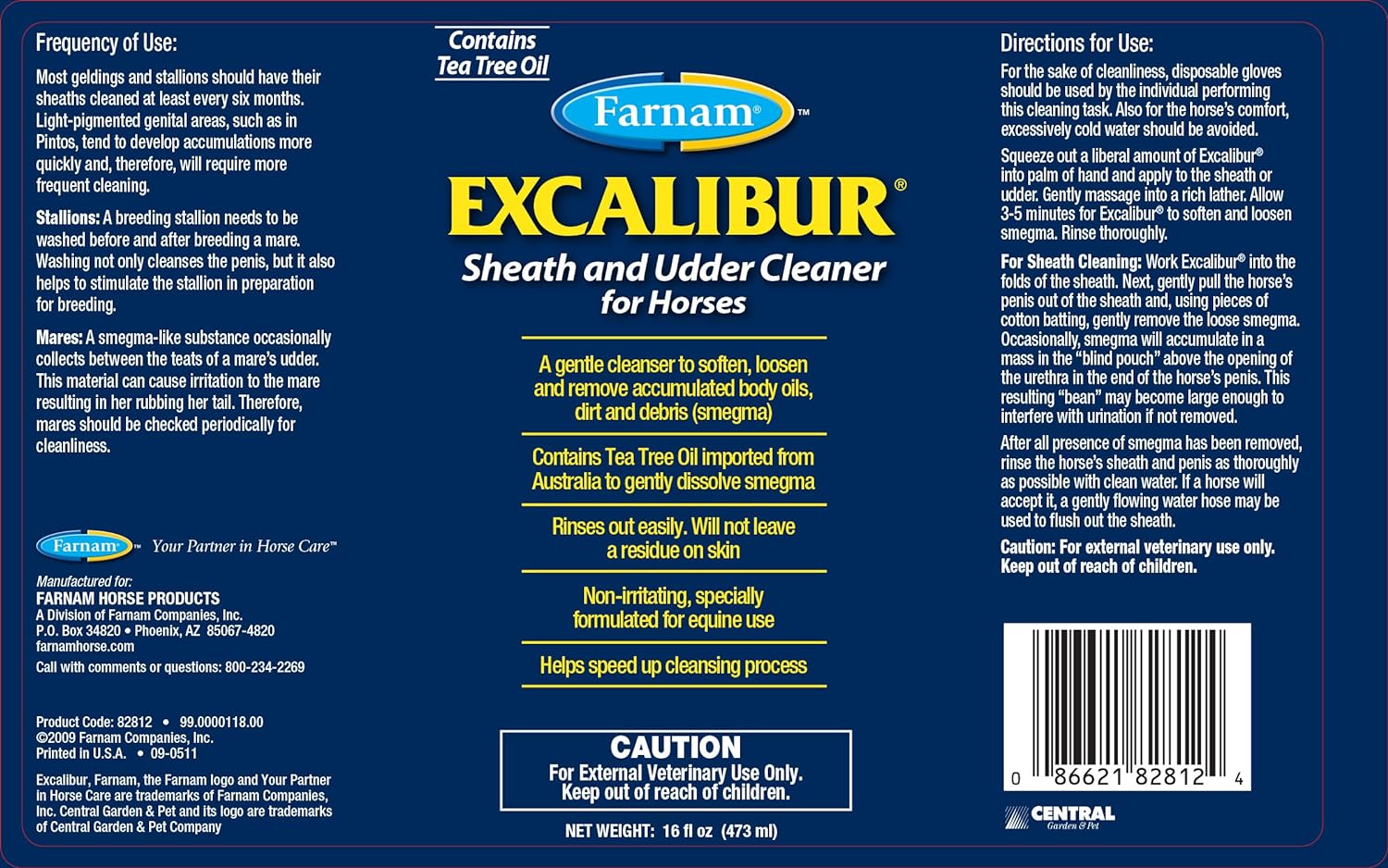 Farnam® Excalibur Sheath Cleaner is a gentle, effective cleaner for horse sheaths and udders, designed to soften and remove accumulated smegma, dirt, and oils. It’s safe, non-irritating, and specially formulated for equine hygiene, making routine cleaning fast and easy.