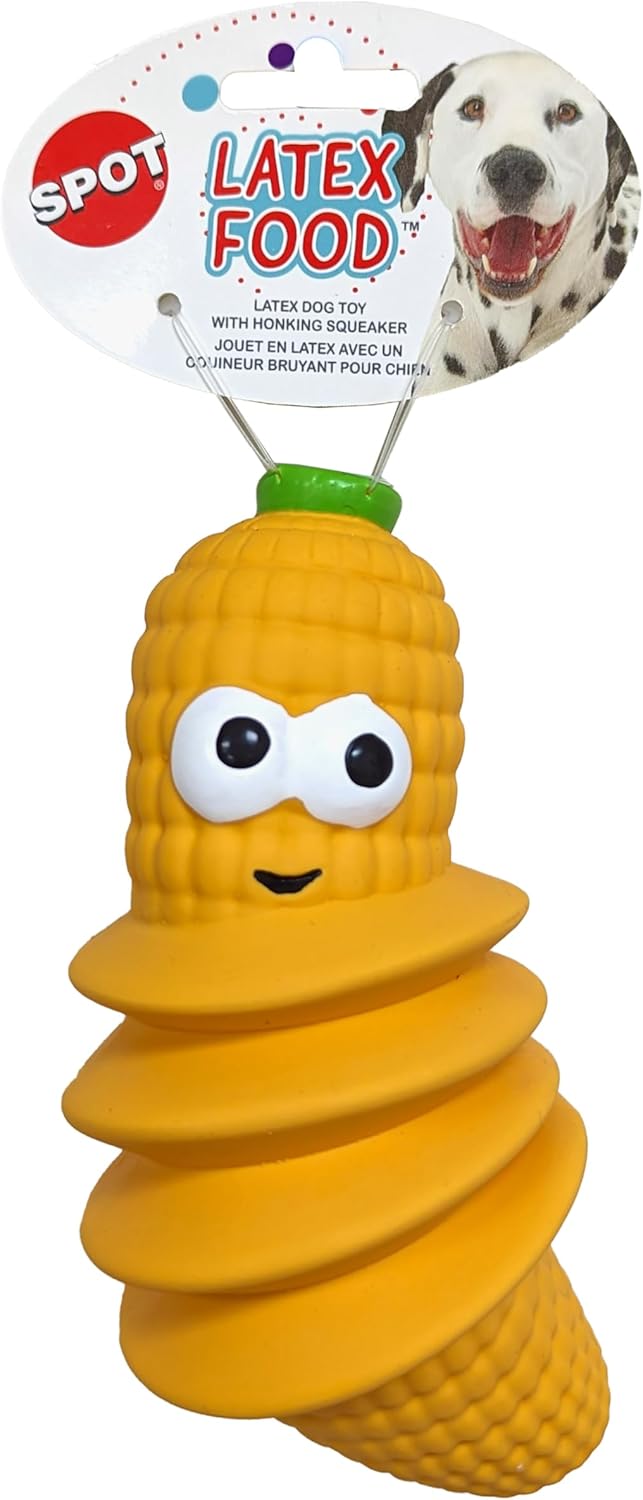 SPOT Latex Foods Dog Toys - Soft & Stuffing-Free with Honking Squeaker, 100% Latex, Brightly Colored, Ideal for Medium/Large Dogs & Light Chewers, 8-inch Assorted Styles